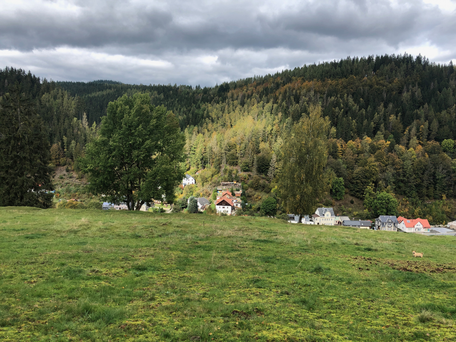 Hier mal ein Blick nicht auf sondern von der Wiese ins Tal