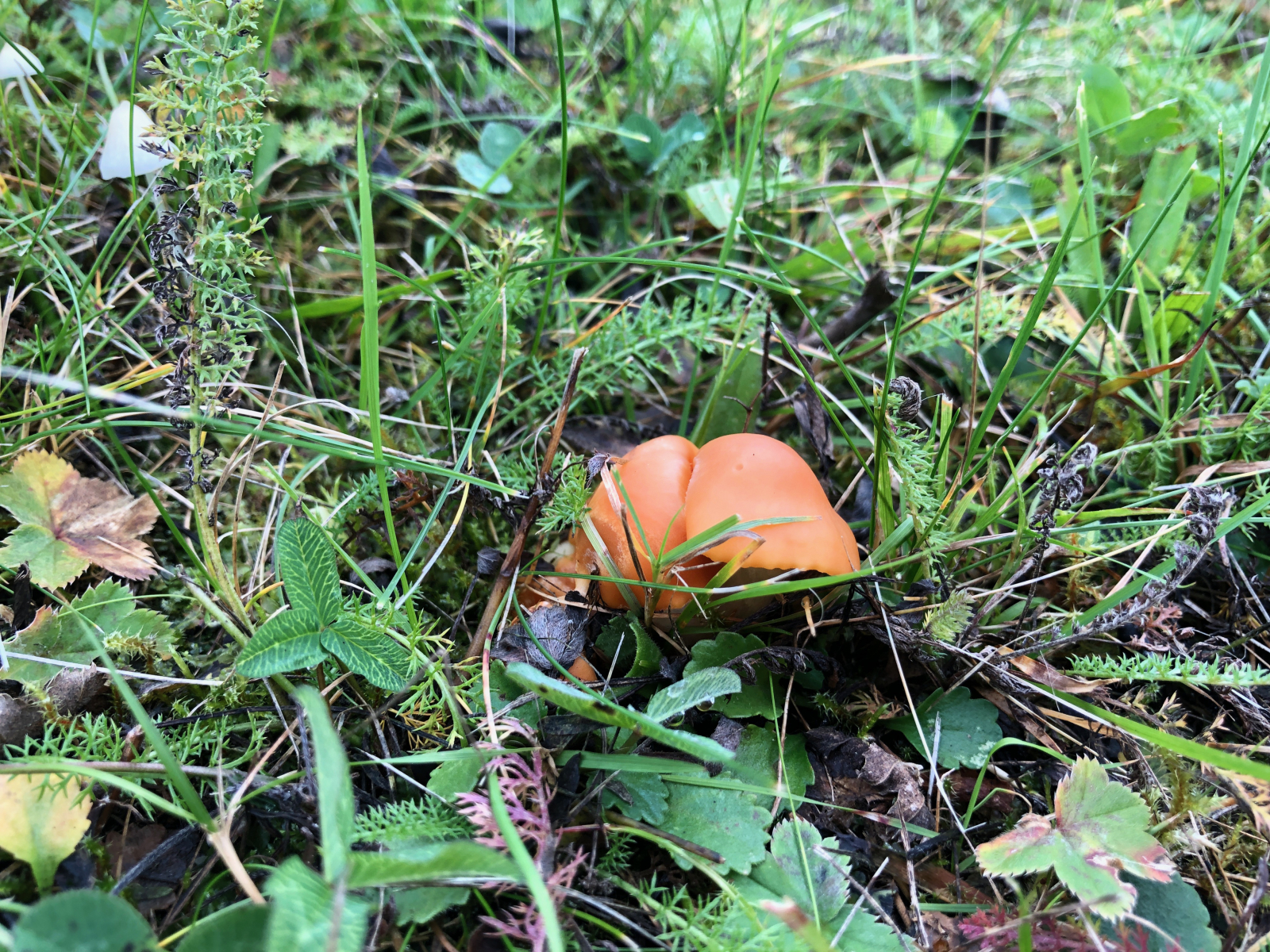 Und hier noch ein Wiesenellerling -Cuphophyllus pratensis. Nicht gut fotografiert. Wahrscheinlich war ich unaufmerksam, weil es einfach zu viele davon gab. Ich habe immer nur gestaunt über das Massenaufkommen.