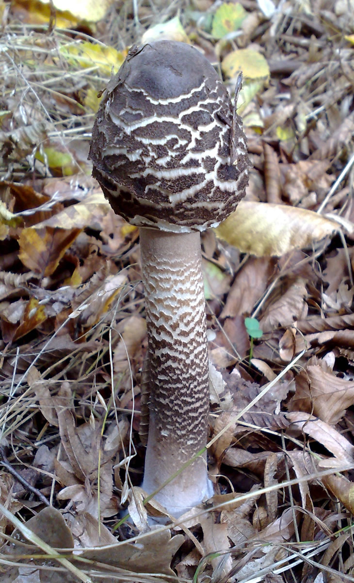 Jedenfalls ist mir heute erstmalig auch ein sehr dunkles Exemplar begegnet: ich denke, es handelt sich um den dunklen Riesenschirmling (Macrolepiota procera var. fulinogoas) - korrekt?