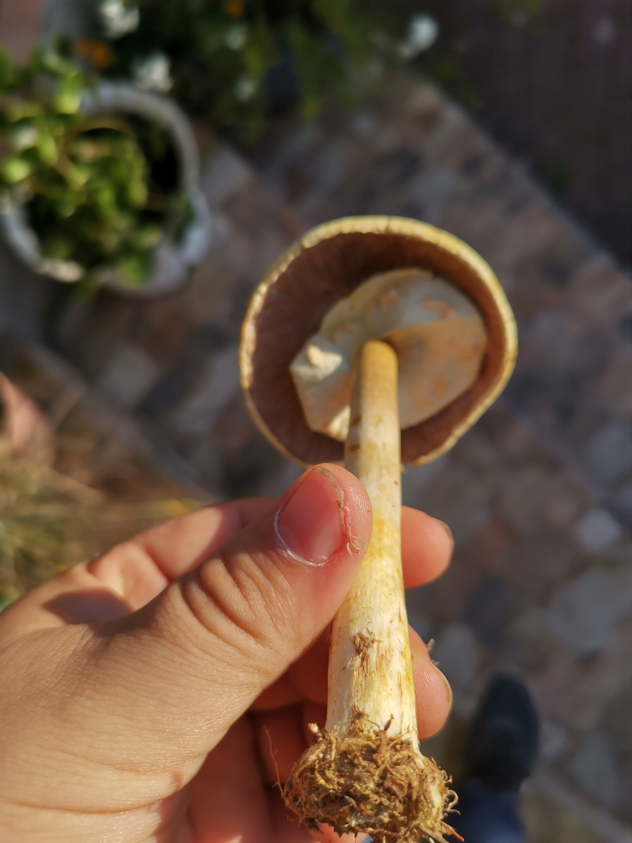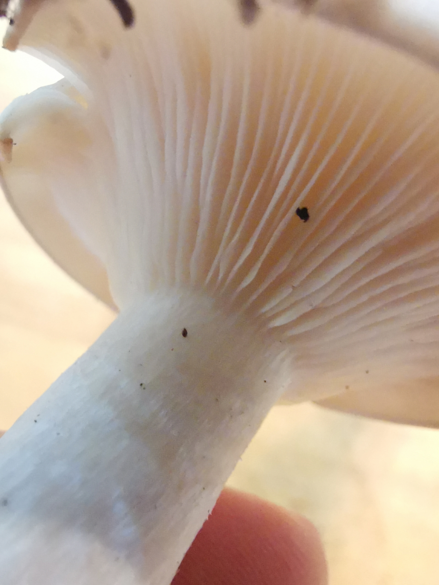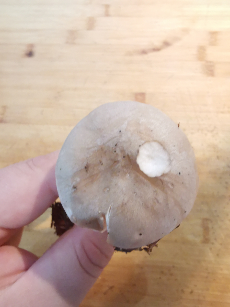 Beim reiben des Hutes oder Stils verfärbte ernsich langsam gelblich und blieb auch nach längerem Warten gelb. An den verfärbte Stellen roch er herrlich nach Anis/Mandel. Bei diesem Exemplar sieht man auch das sternenförmige Velum sehr gut.