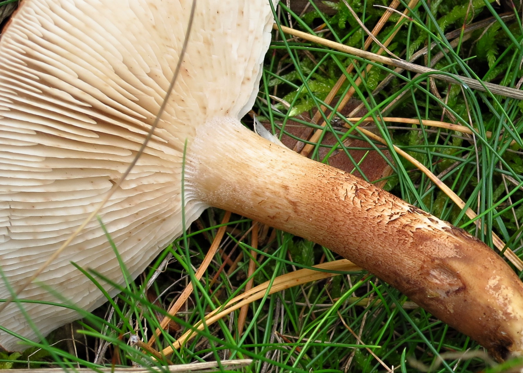 ich war am Samstag mal wieder in meinem brandenburger „Jagdrevier“ auf Pilzsuche. Dabei sind mir, gleich am mehreren Stellen, recht kräftige Lamellenpilze aufgefallen, die mir von dort so nicht bekannt waren. Leider kenne ich mich bei den in Frage kommenden Gattungen so gar nicht aus, aber vielleicht könnt Ihr ja helfen.