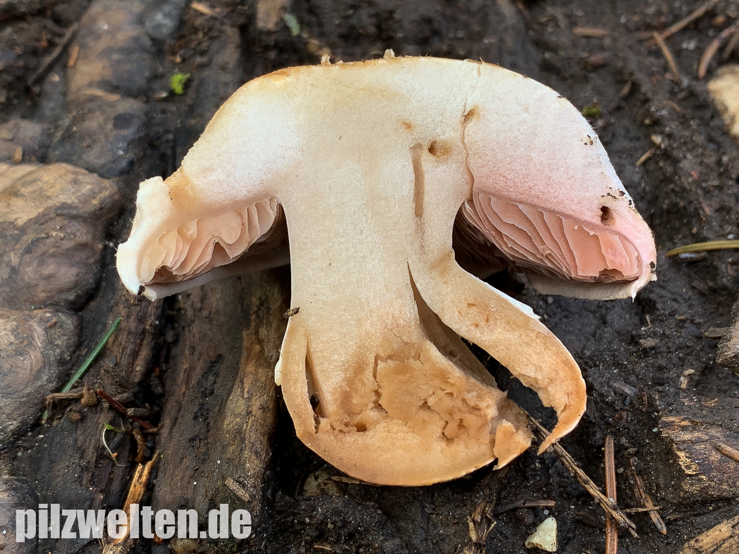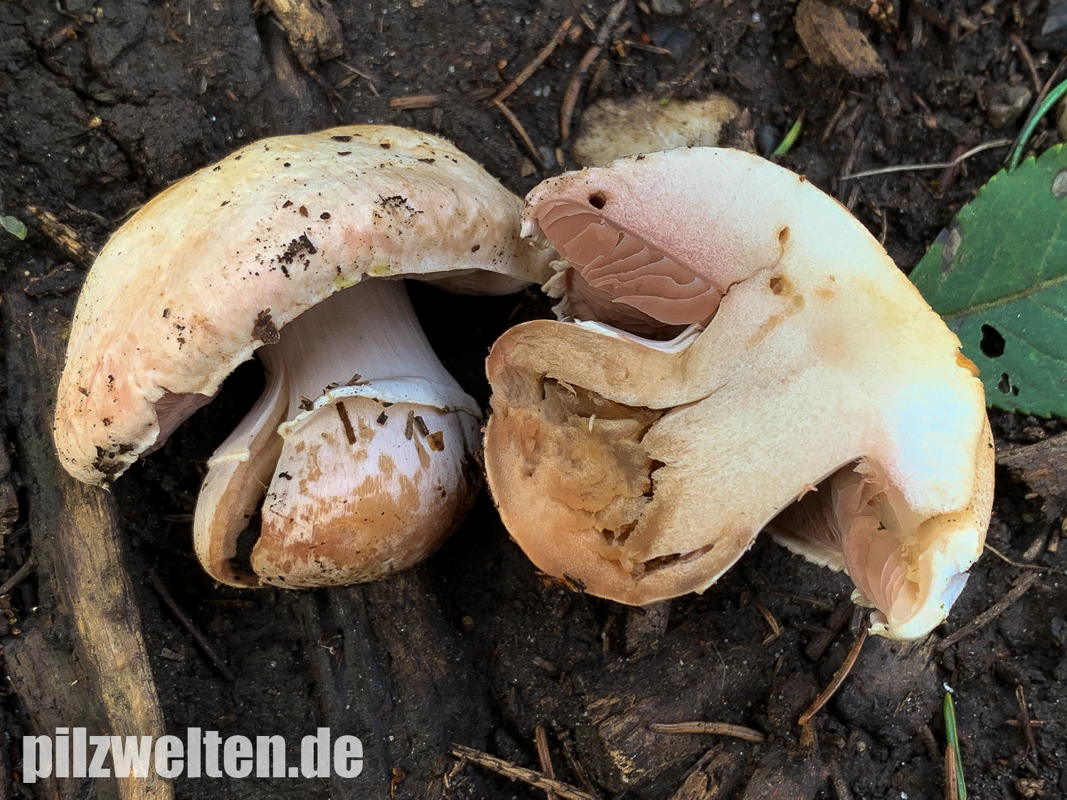 den folgenden Fund konnten wir mittem auf einem Waldweg machen auf dem sonst riesige Lepista nuda wachsen - scheint dort also sehr nährstoffreicher Boden zu sein. Wirkt dort fast, als hätte jemand Rindenmulch hingekippt.