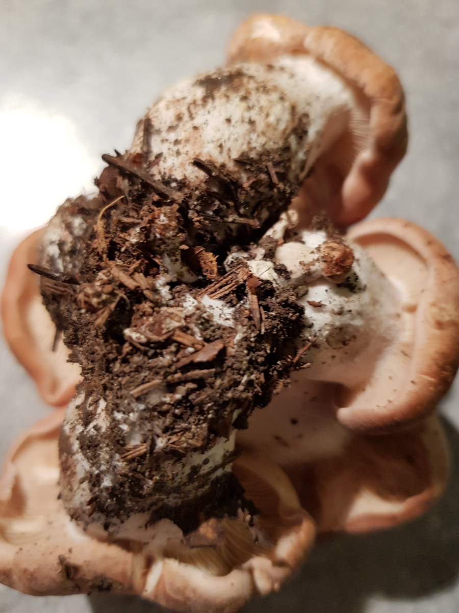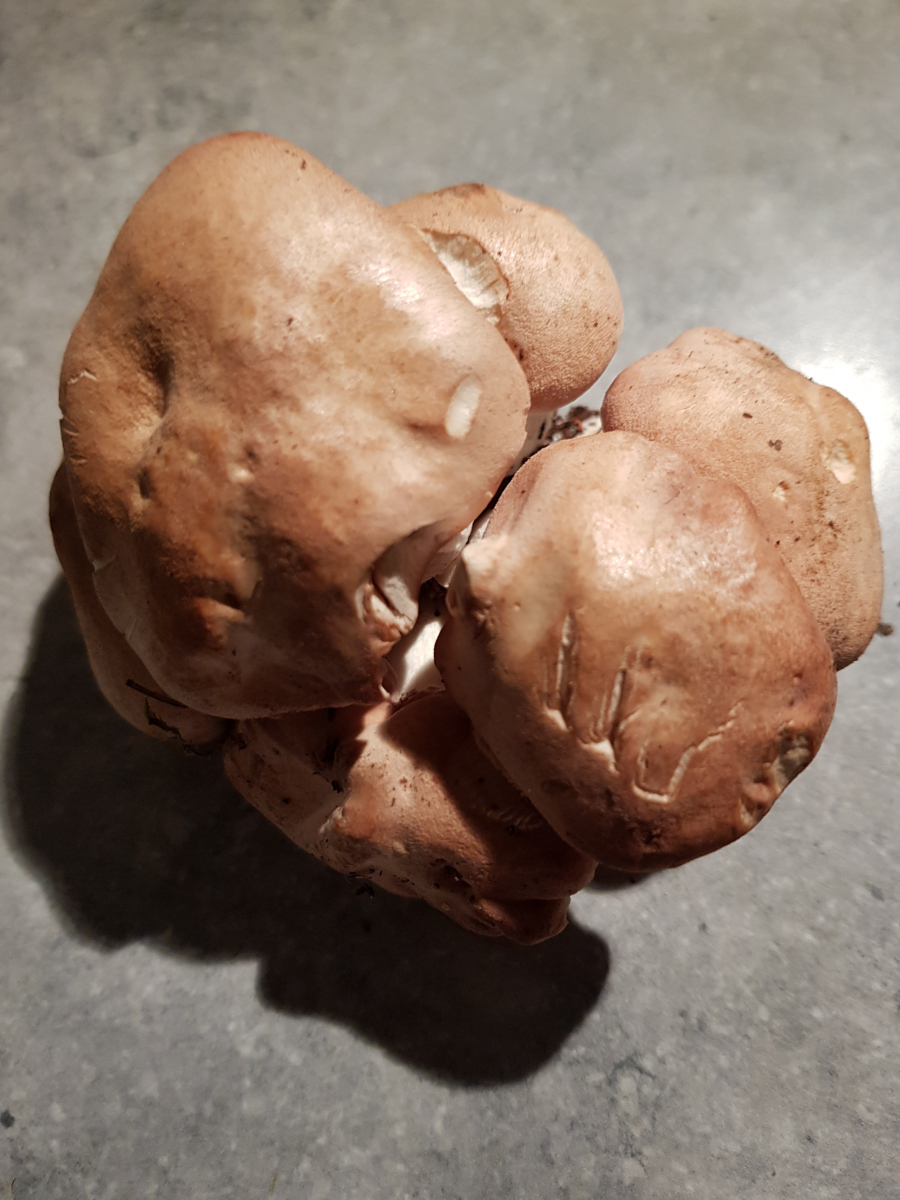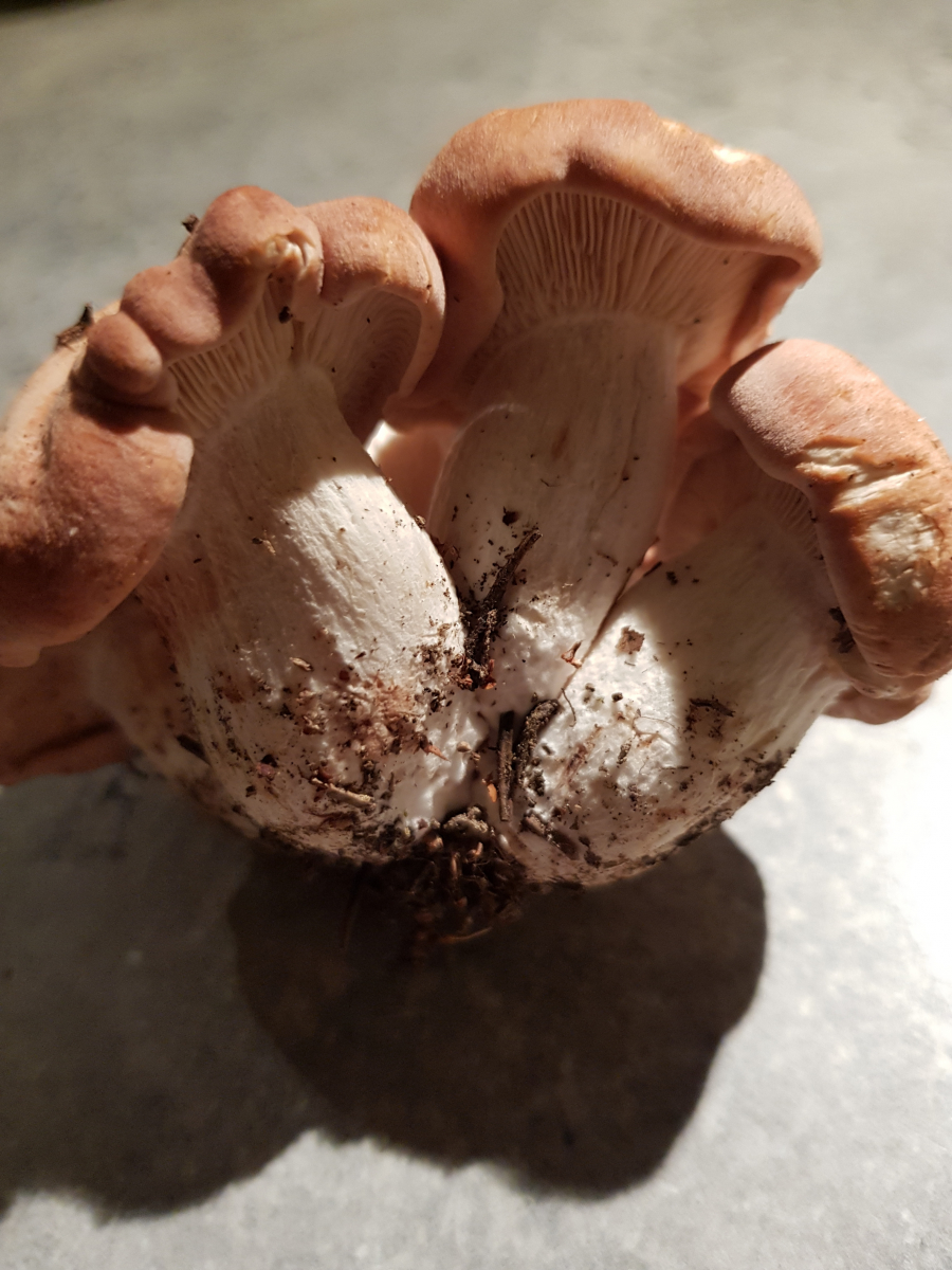 Rhodocybe gemina , diese passt an dein 1 zu 1 ( Hutfarbe sehr variabel )