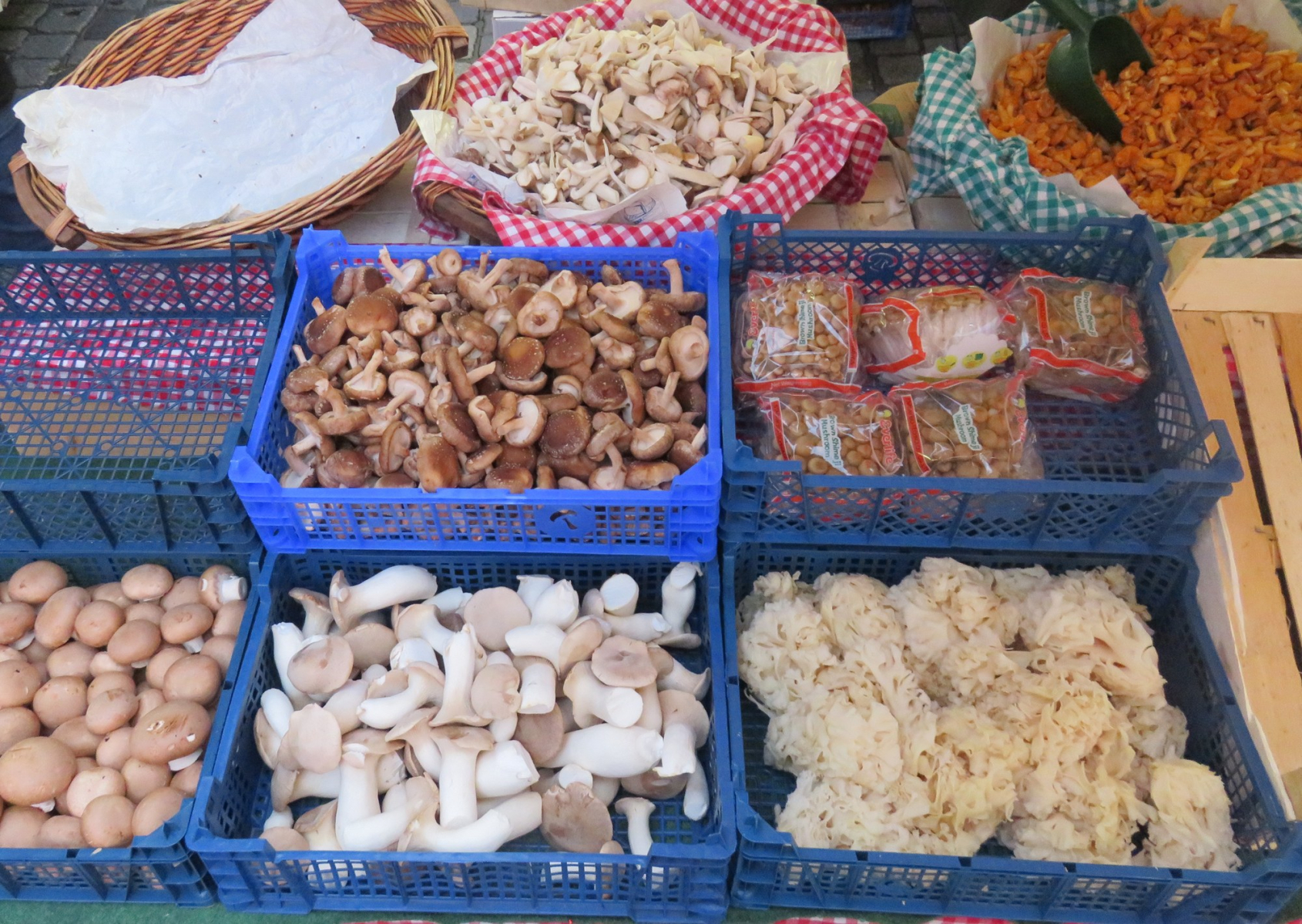 Am Samstag den 10.10.2020 war ich kurz nach 7 Uhr früh dort. Der Stand war da, un die Bilder will ich euch zeigen. Ich finde die Auswahl sehr gut und alles ist sauber sortiert. Der Verkäufer hat mir erlaubt die Pilze fürs Forum zu fotografieren und erzählte dass er seit 10 Jahren auf Pilzen spezialisiert ist und am jeden Samstag den ganzen Jahr lang zumindest eine gute Auswahl an Zuchtpilzen hat. Dazu kommen noch die Wildpilze, zur richtigen Zeit gibt es sogar Kaiserlinge!