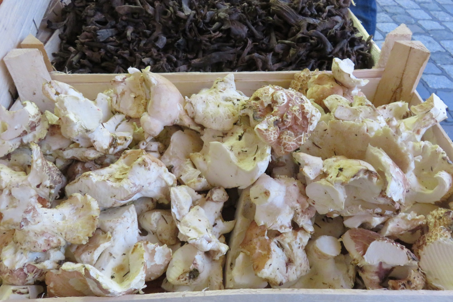 Diese Hirtenpilze hielt ich für Albatrellus spec. Der Name unter dem diese Pilze verkauft werden sind "Hirtenpilz" oder "Schaffuß". Googlen ergab dass unter solchen Namen die Semmelstoppelpilze gemeint sind (bei denen vielleicht die Stoppeln abgemacht wurden?!). Was meint ihr?