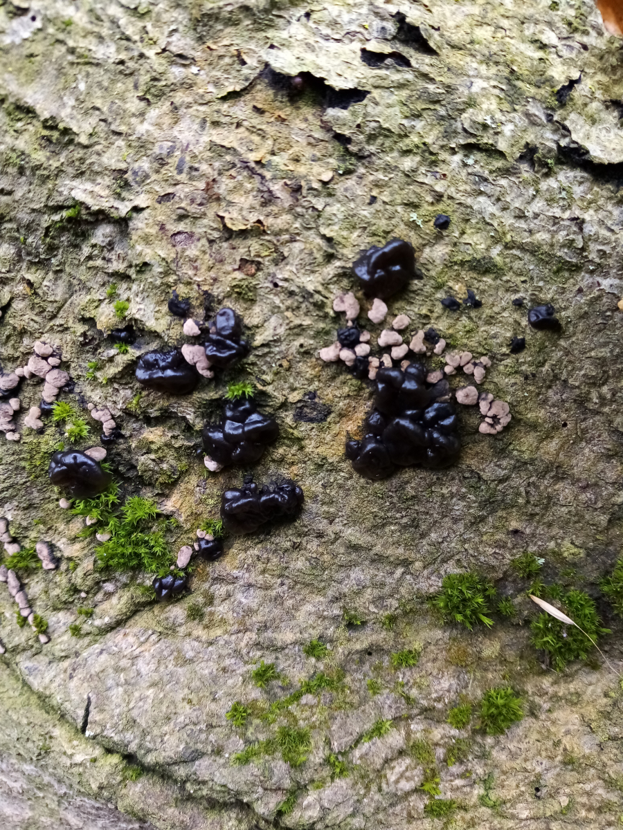 Das erste dürfte eine Vergesellschaftung aus Warzigem Drüsling (Exidia nigricans) und einer Kohlenbeeren - Nebenfruchtform sein.