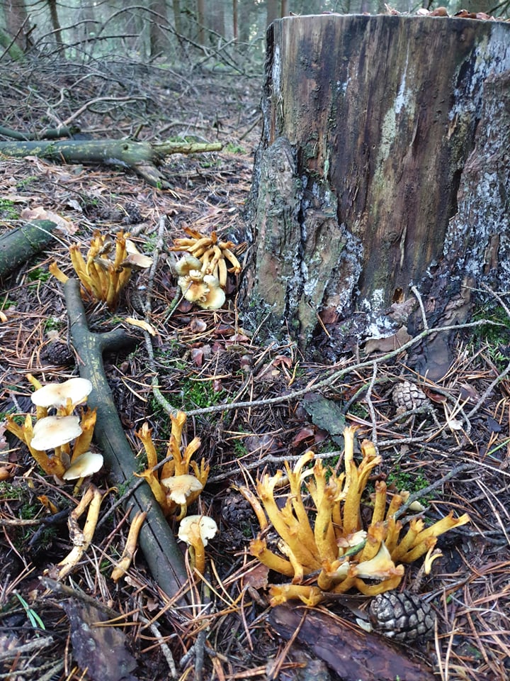 Die Schwefelköpfe und die Fliegenpilze sowie Birkenpilze und Maronen (auf dem Brett zu sehen) habe ich identifizieren können... doch ist die etwas Golden Schimmernde Pilz (ebenfalls auf dem Brett und in meiner Hand) ein Reizger? ![]()