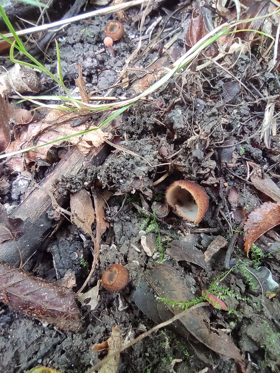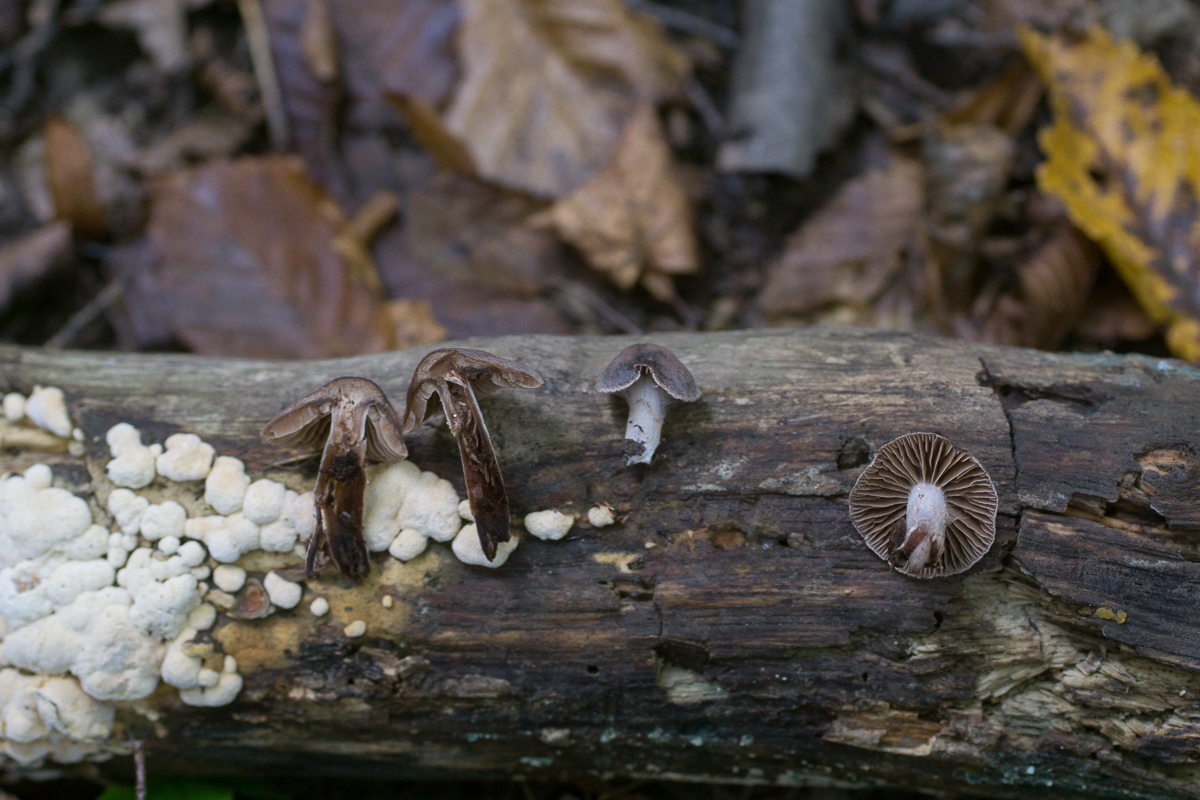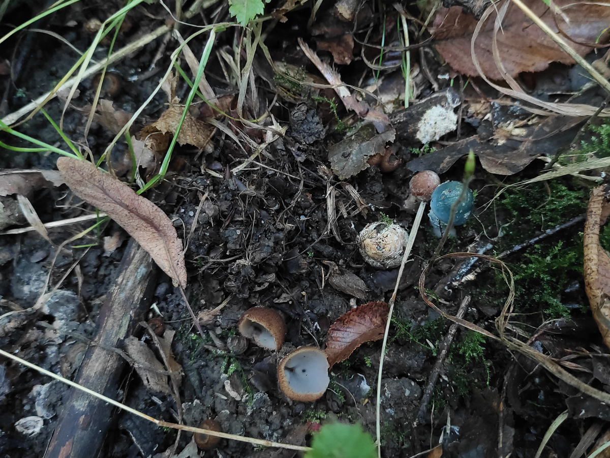 7. Auf engstem Raum, 4 Arten. Der kleine haarig-borstige Becherling war hübsch, aber den kann man makroskopisch nicht klären, oder?