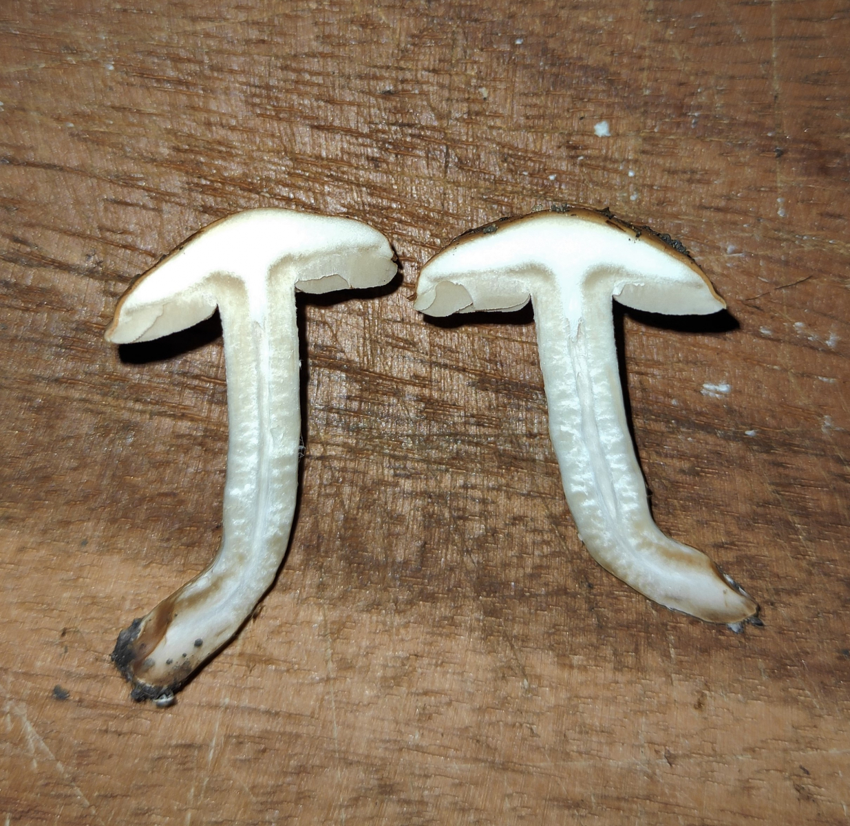 Also Hebeloma spec. und aus, oder? Im Schnittbild meine ich dann aber wieder einen Zapfen zu sehen was ja auf den Rettichfälbling weisen würde, oder?