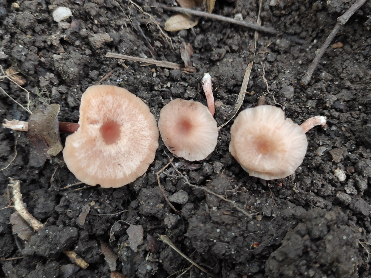 Der größte hatte 3cm Hutdurchmesser. Gerieft. Mittig eingedellt im Alter. Rosarot. Stark hygrophan.
