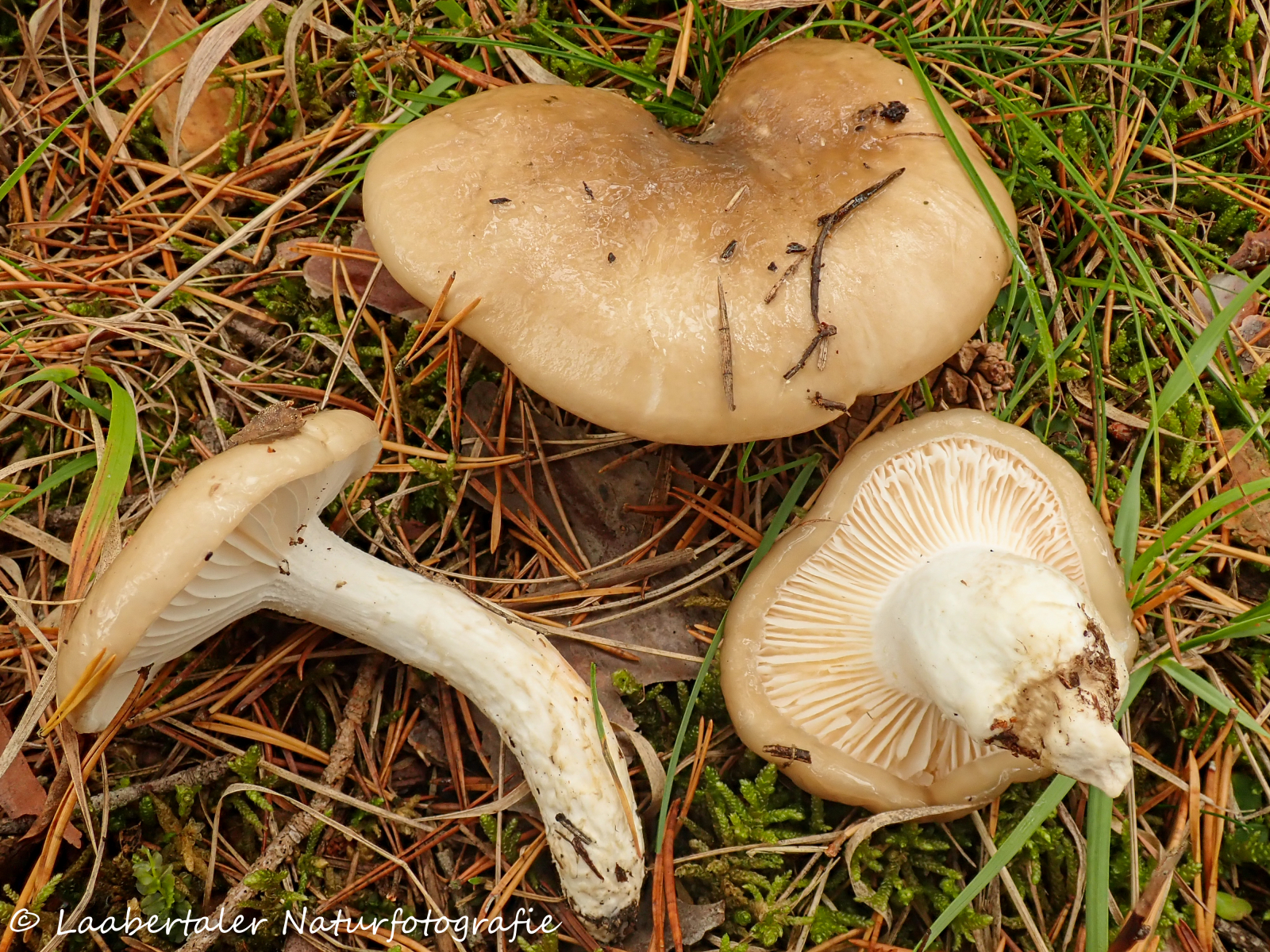 Unter Kiefern: Großer Kiefernschneckling (Hygrophorus latitabundus).