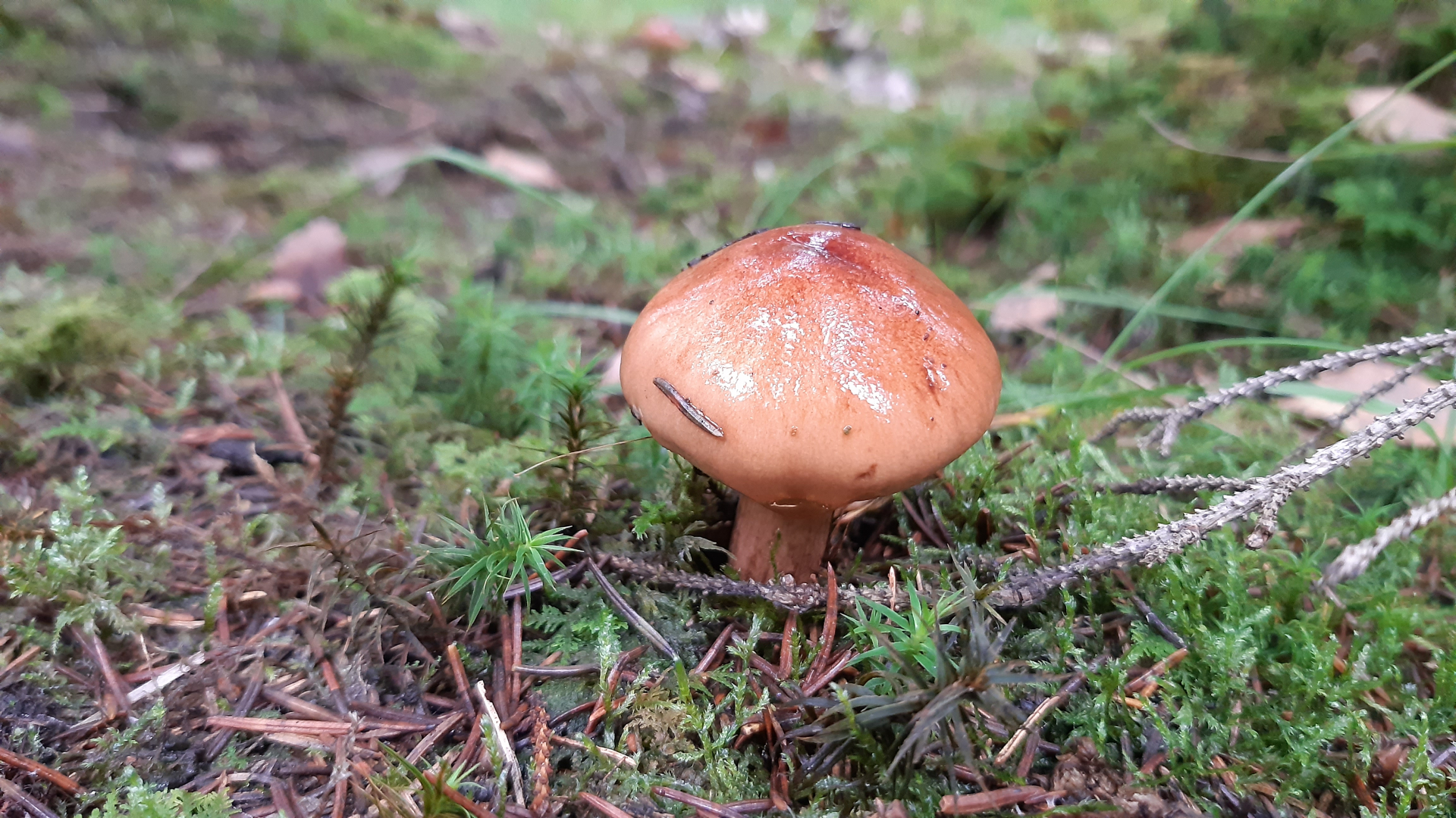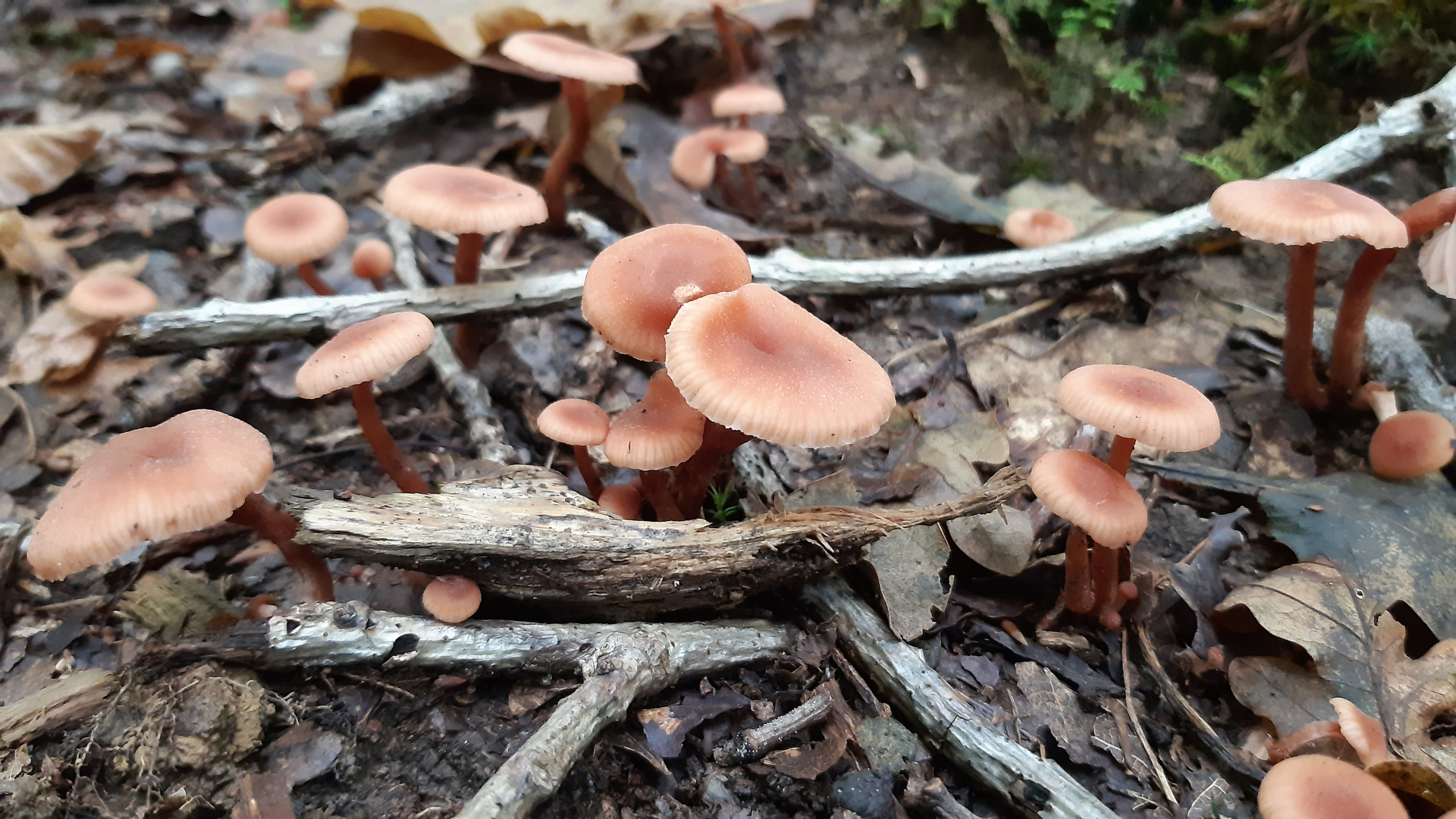 Bild 1 = Einer der Rötlichen Lacktrichterlinge (Laccria spec.)
