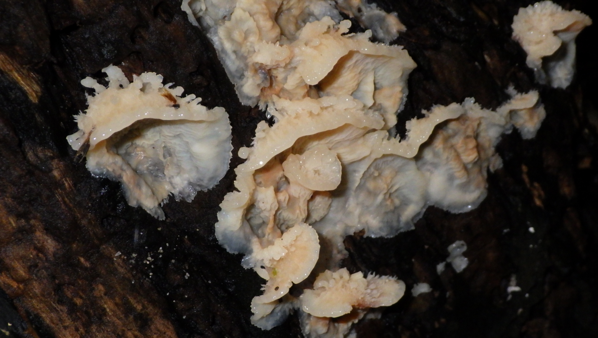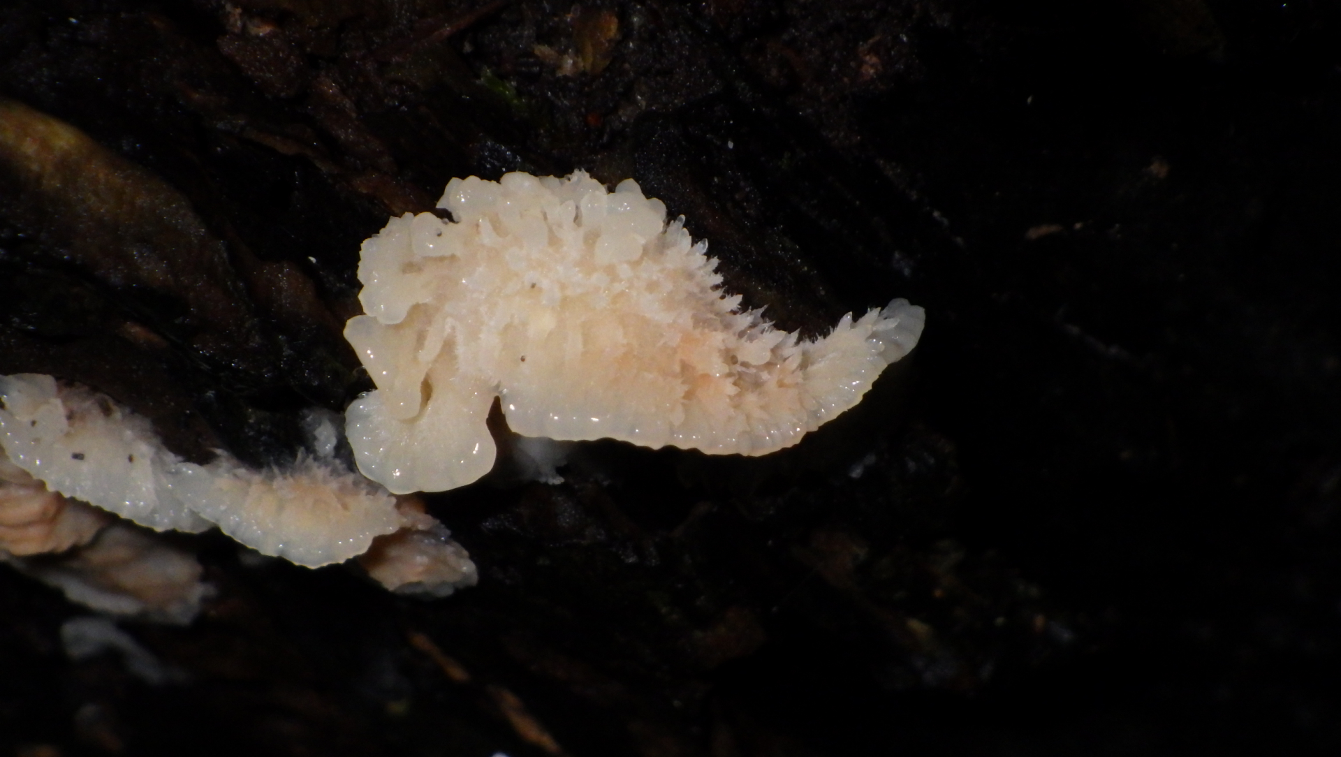 Habe heute entlang der Bünz in Dottikon an einem Baumstumpf eine Ansammlung kleiner weicher, oberflächlich schmieriger, geruchloser, weiss bis rötlichbrauner Baumpilzchen fotografiert. Sie haben weder echte Lamellen, Röhren oder Stacheln. Sie haben mich etwas an Eiszitterpilze erinnert. Auch für Gallertpilze passen, zumindest für mich, die morphologischen Eigenschaften nicht. Kann mir jemand bei dieser "Knacknuss" einen guten Hinweis liefern?