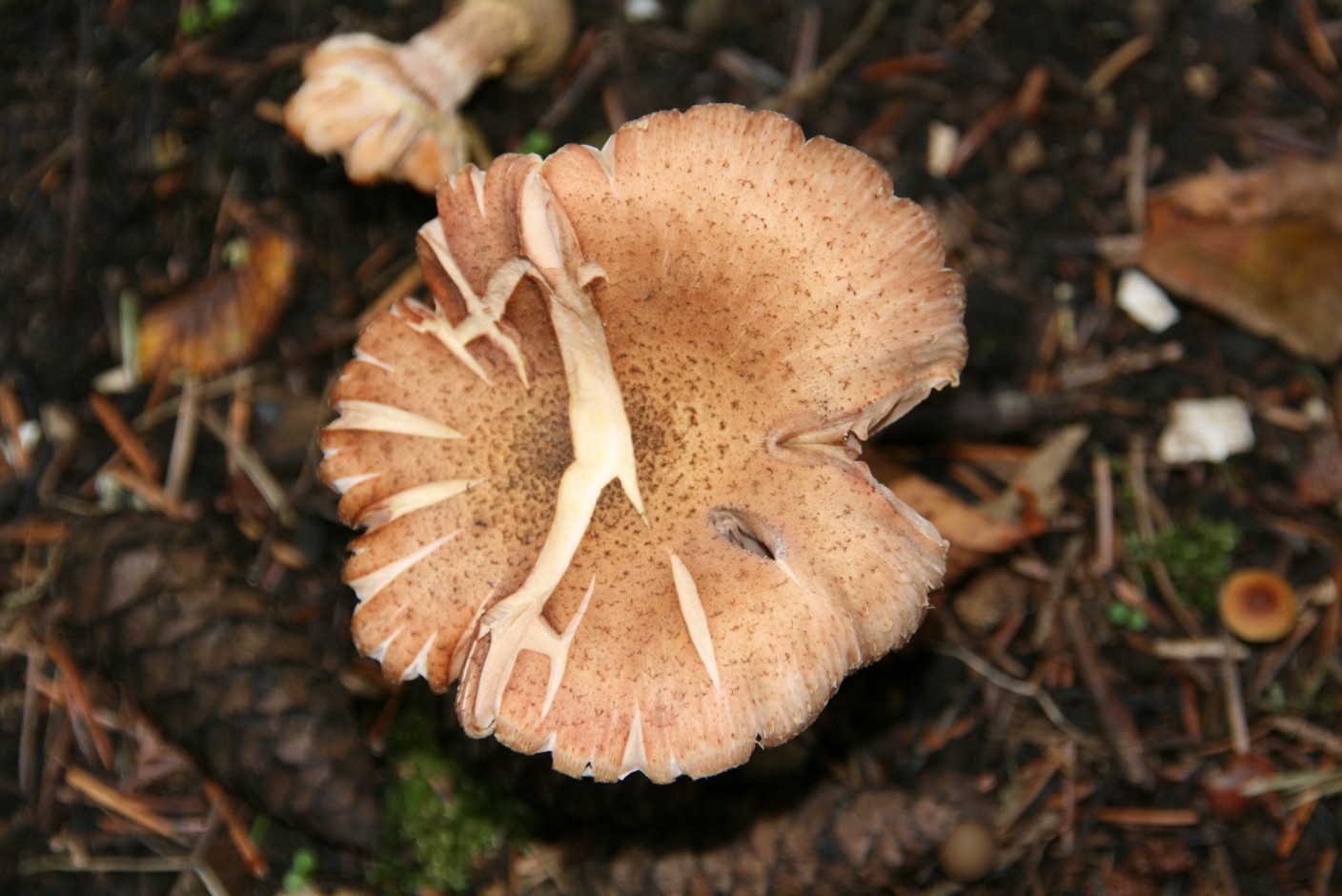 ich bin absoluter Pilzlaie und habe in meinem und Nachbars Garten vier verschiedene? Pilze fotografiert. 1+2 unter Fichten, 3+4 im Beet zwischen Ziergehölzen.