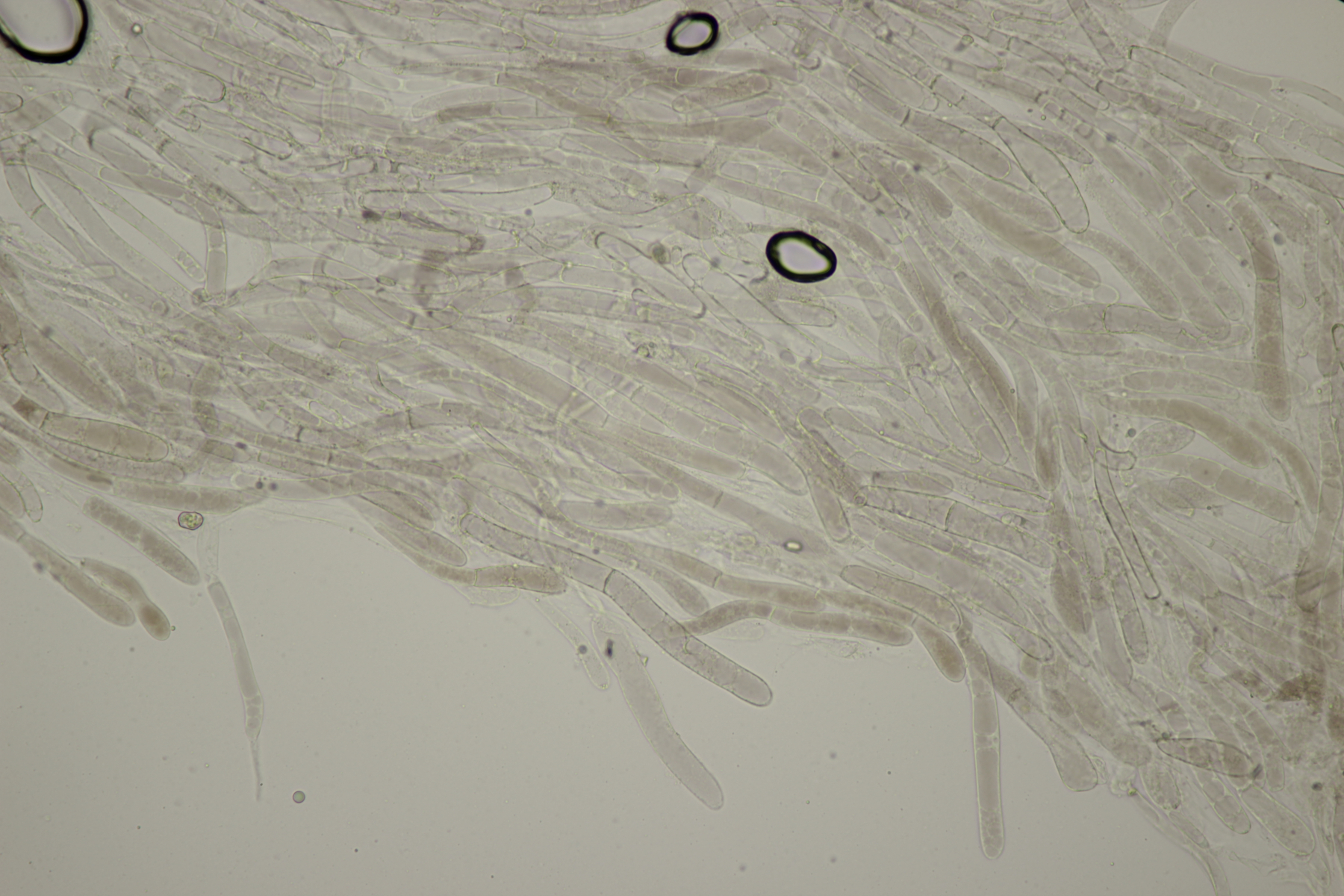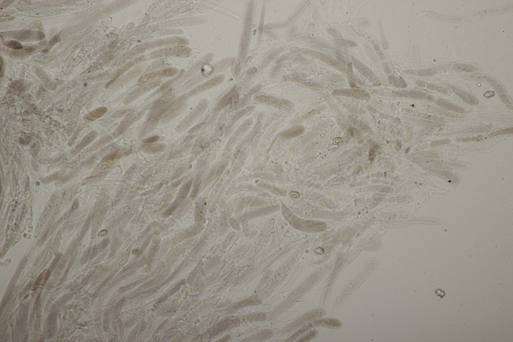 6. Hier lande ich mit Sporenmaßen von (18.7-22.2) µm x (12.6-14.6) µm, Q=1.4-1.7 bzw. (20.7+-1.0) µm x (13.6+-0.6) µm, Q=1.5+-0.1 bei Lasiobolus cuniculi. Ich habe mir auch einige Schafsköttel eingepackt. Mal schauen, was die in Kultur noch alles hervorbringen werden.