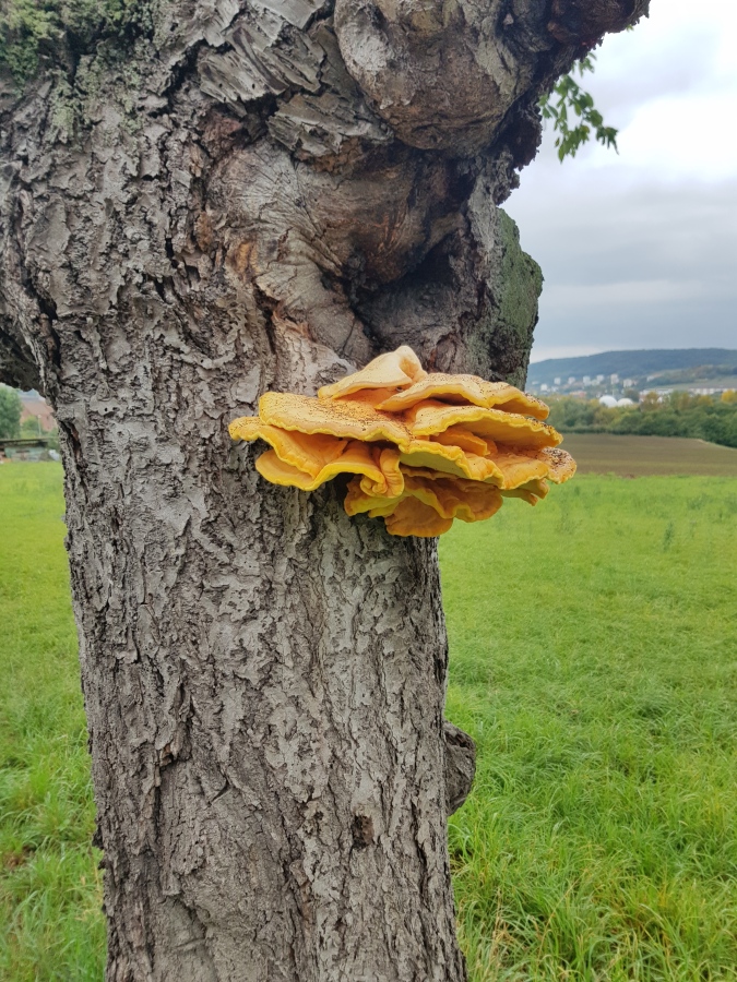 1) Auf dem Weg gab es bereits einen trivialen Erstfund für mich: den Schwefelporling im besten Zustand. Habe ich tatsächlich noch nie zuvor gefunden.
