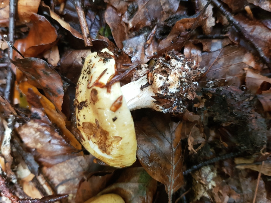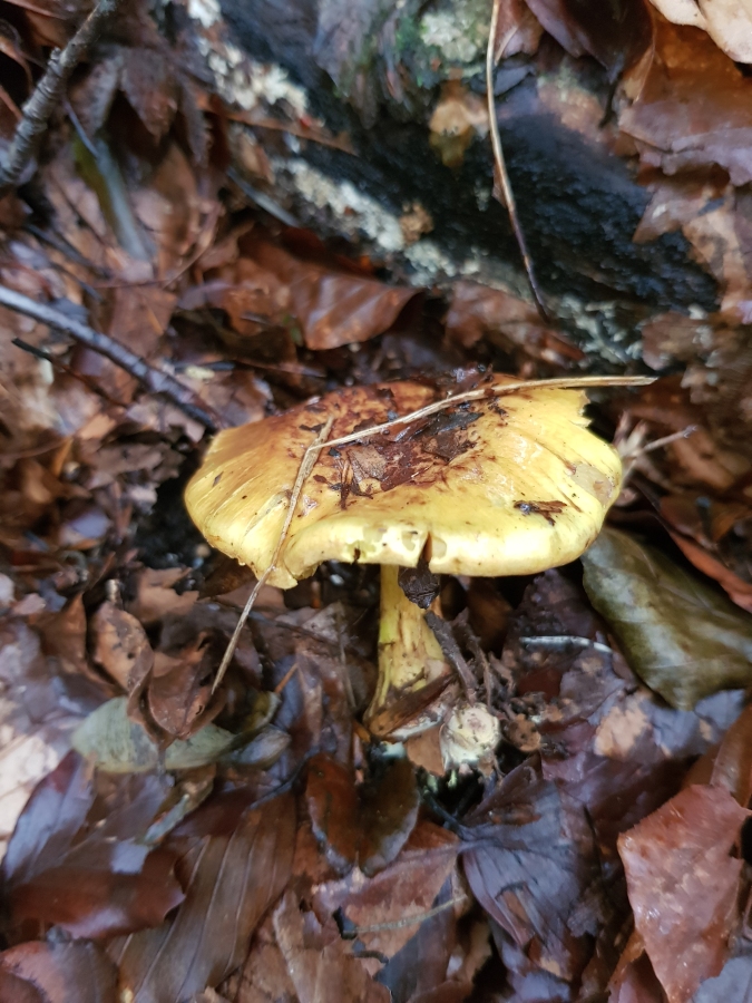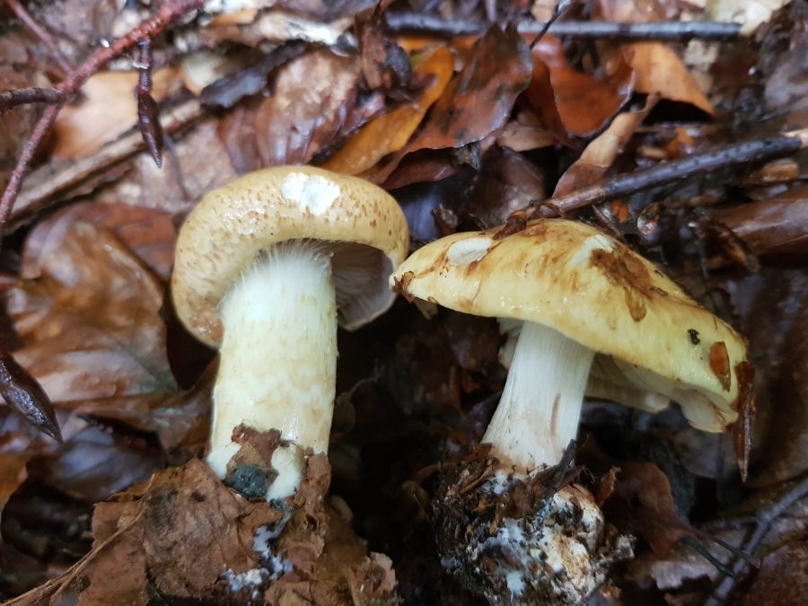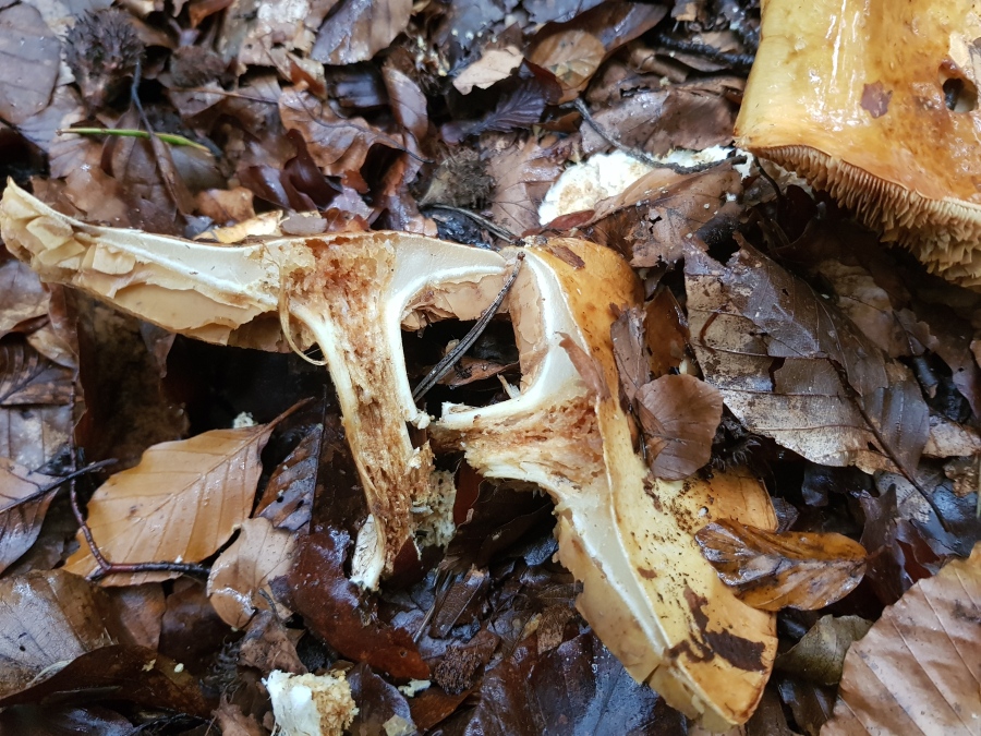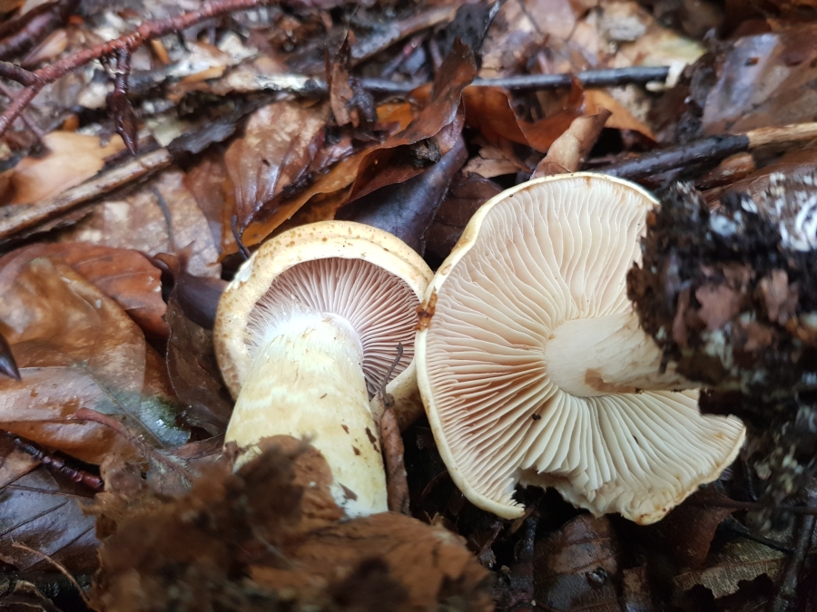 4) Ein weiterer Schleierling, den ich gar nicht einsortieren konnte. Auffällig gelbe Hutfarbe aber heller Stiel und helles Fleisch (soweit man das noch bei diesem Zustand bewerten kann).