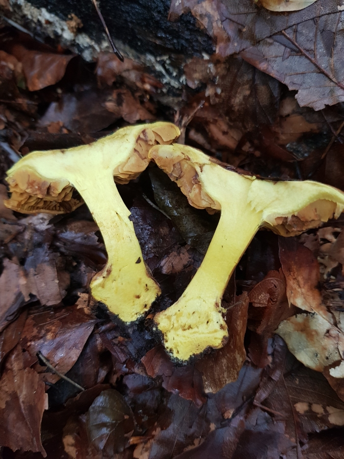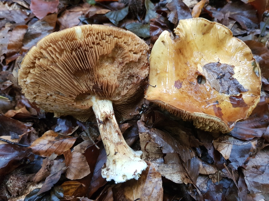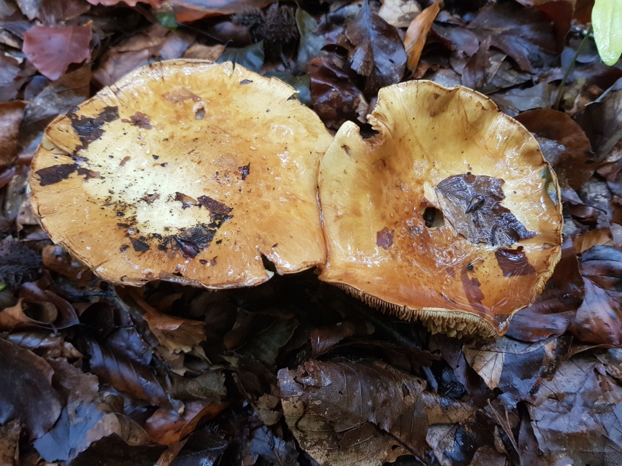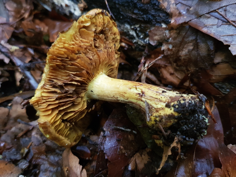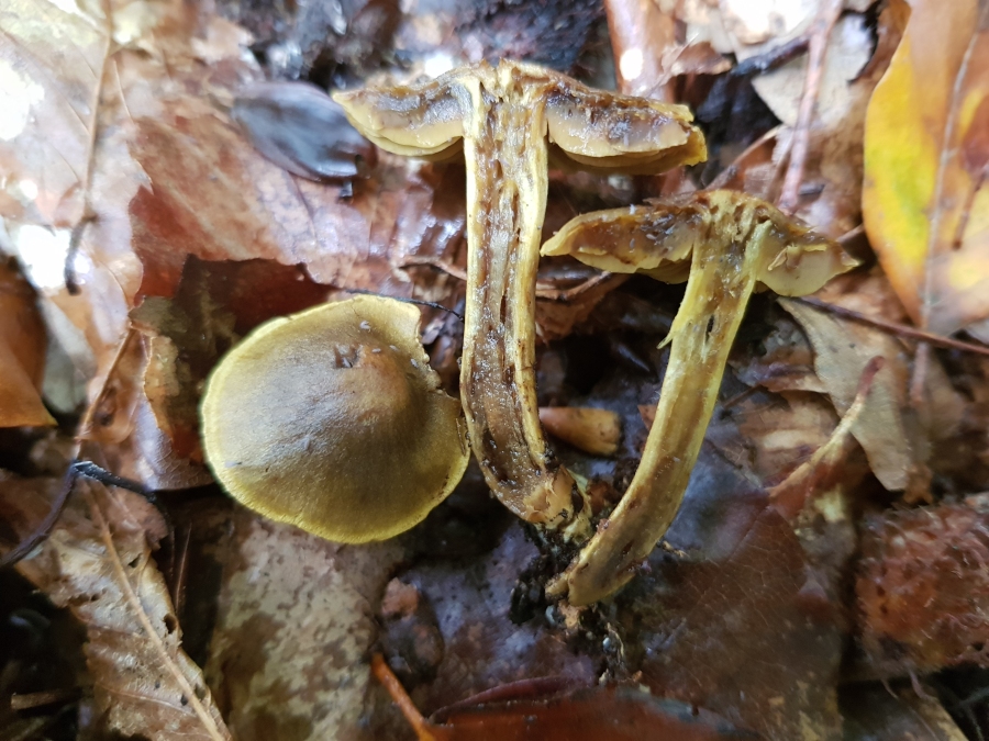 4) Ein weiterer Schleierling, den ich gar nicht einsortieren konnte. Auffällig gelbe Hutfarbe aber heller Stiel und helles Fleisch (soweit man das noch bei diesem Zustand bewerten kann).