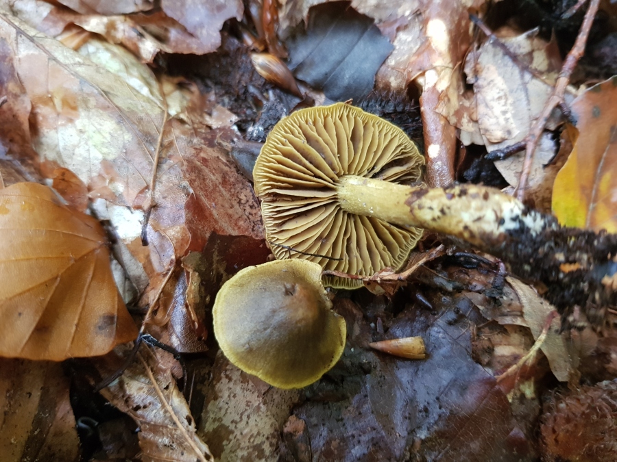 2) Ein Schleierling mit auffällig gelber Farbe in allen Teilen des Fruchtkörper, auch im Fleisch; bei Buche. Für mich eine Phlegamtie um C.elegantissimus herum (Sektion fulvi)?