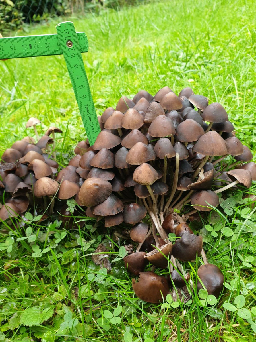 angeregt durch die Lektüre von Merlin Sheldrake (wow!) bin ich durch den Garten gestiefelt und habe ein paar Fotos von zwei der dort vorkommenden Pilzen gemacht. Könnte Ihr mir vielleicht eine Beispiel-Bestimmung "vormachen"?