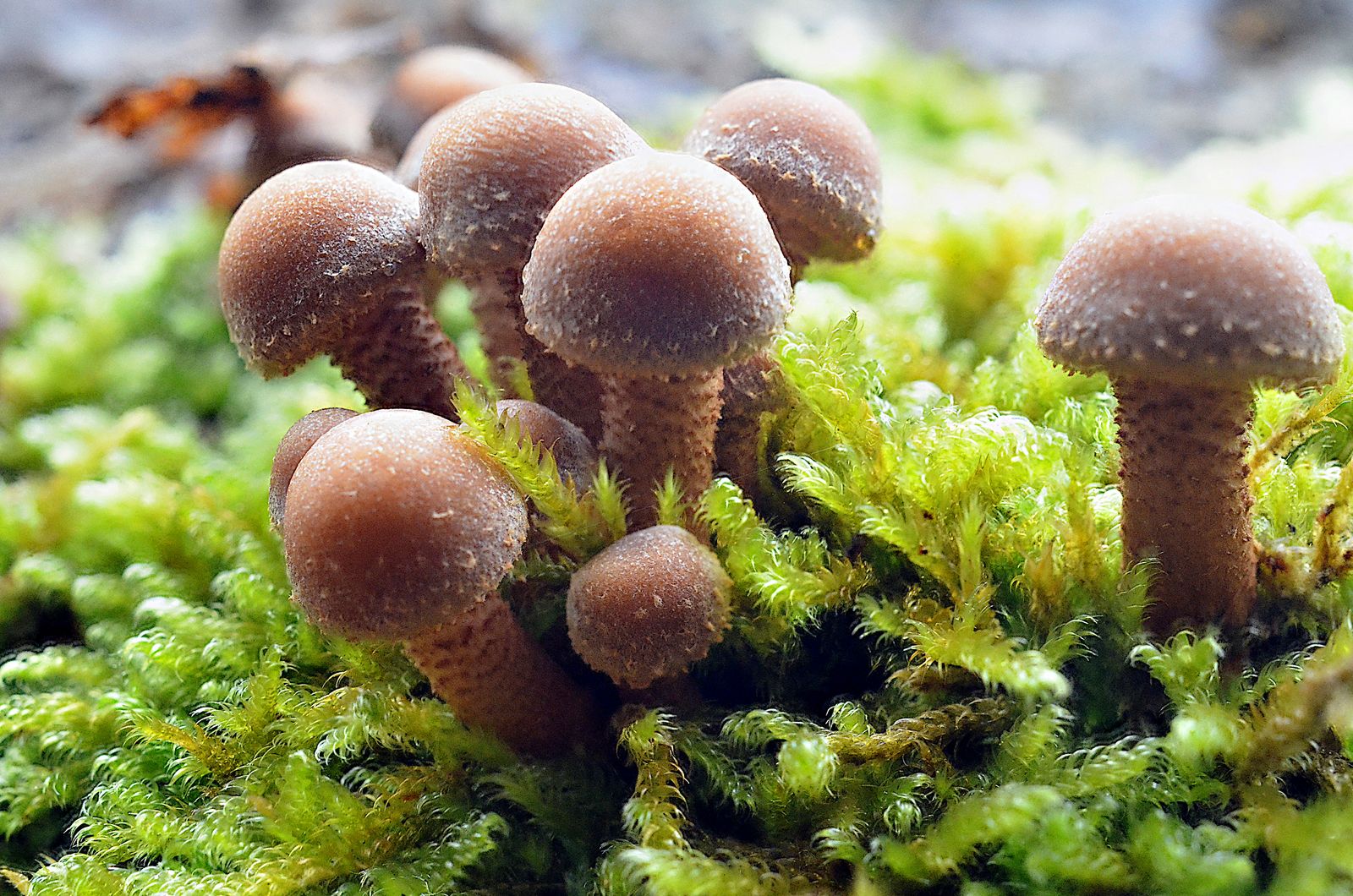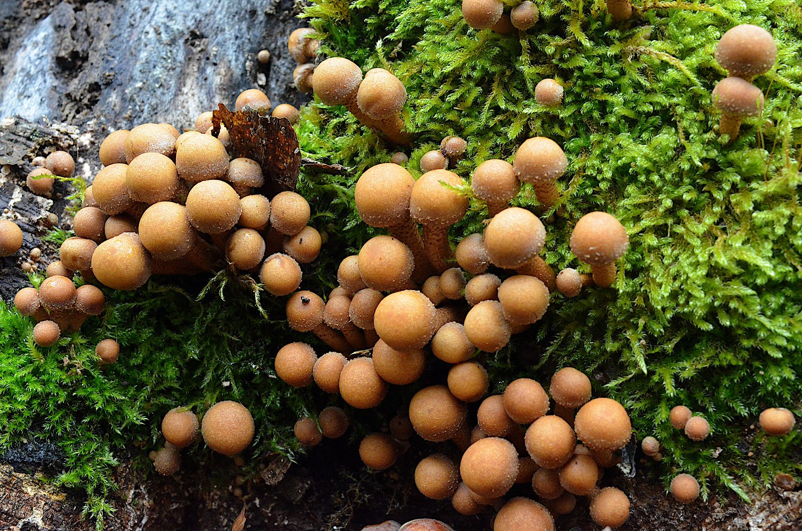 Sogar die violetten Lacktrichterlinge Laccaria amethystina trauen sich hervor.