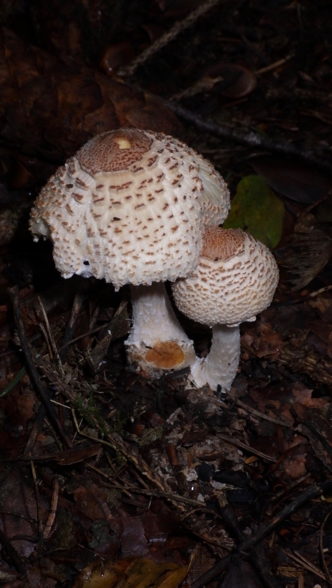 4) Da bin ich mir unsicher, eventuell 2 kleine Gift-Schirmlinge, sie waren recht klein und hatten einen weissen Stiel ohne sichtbaren Ring