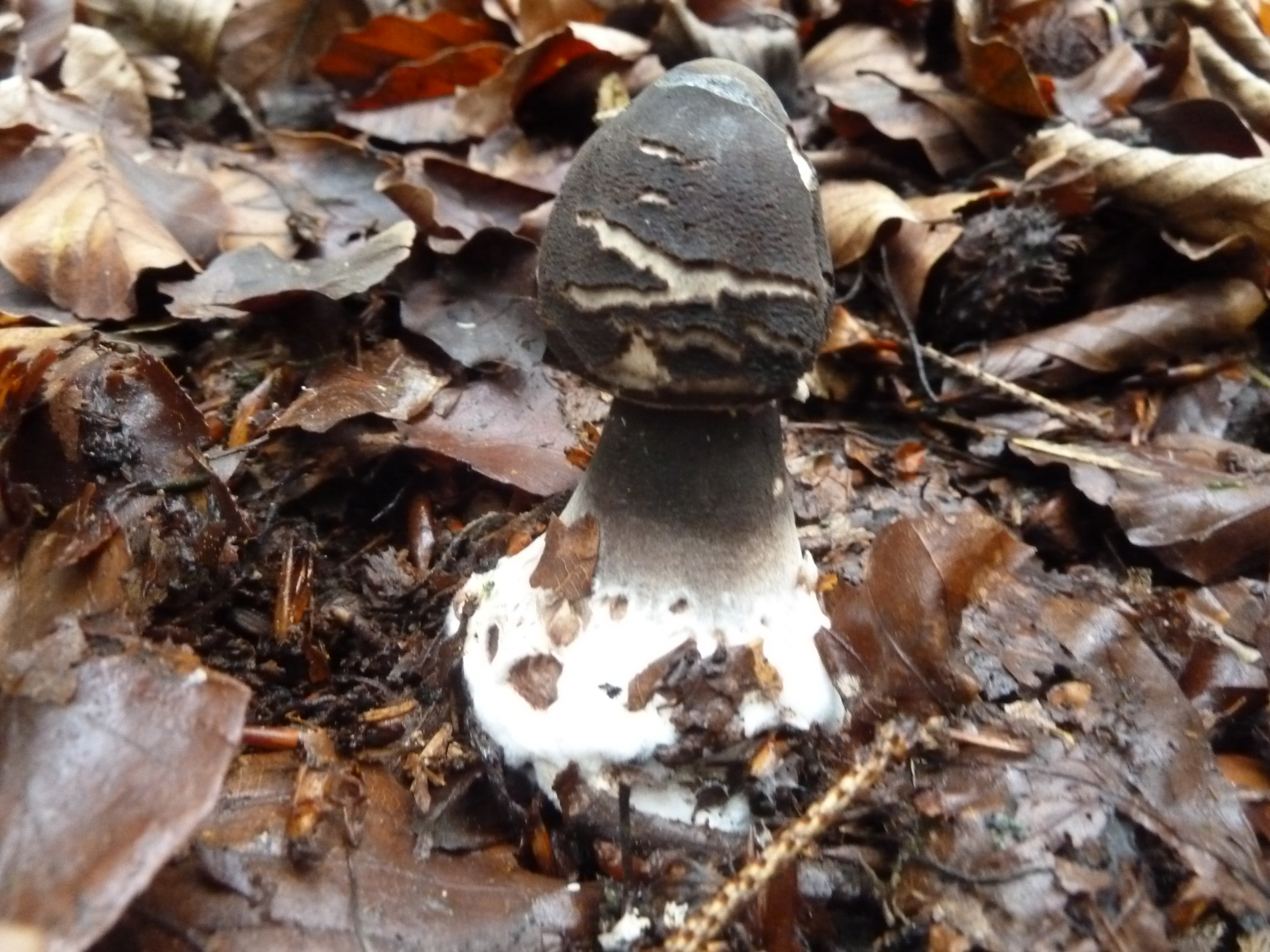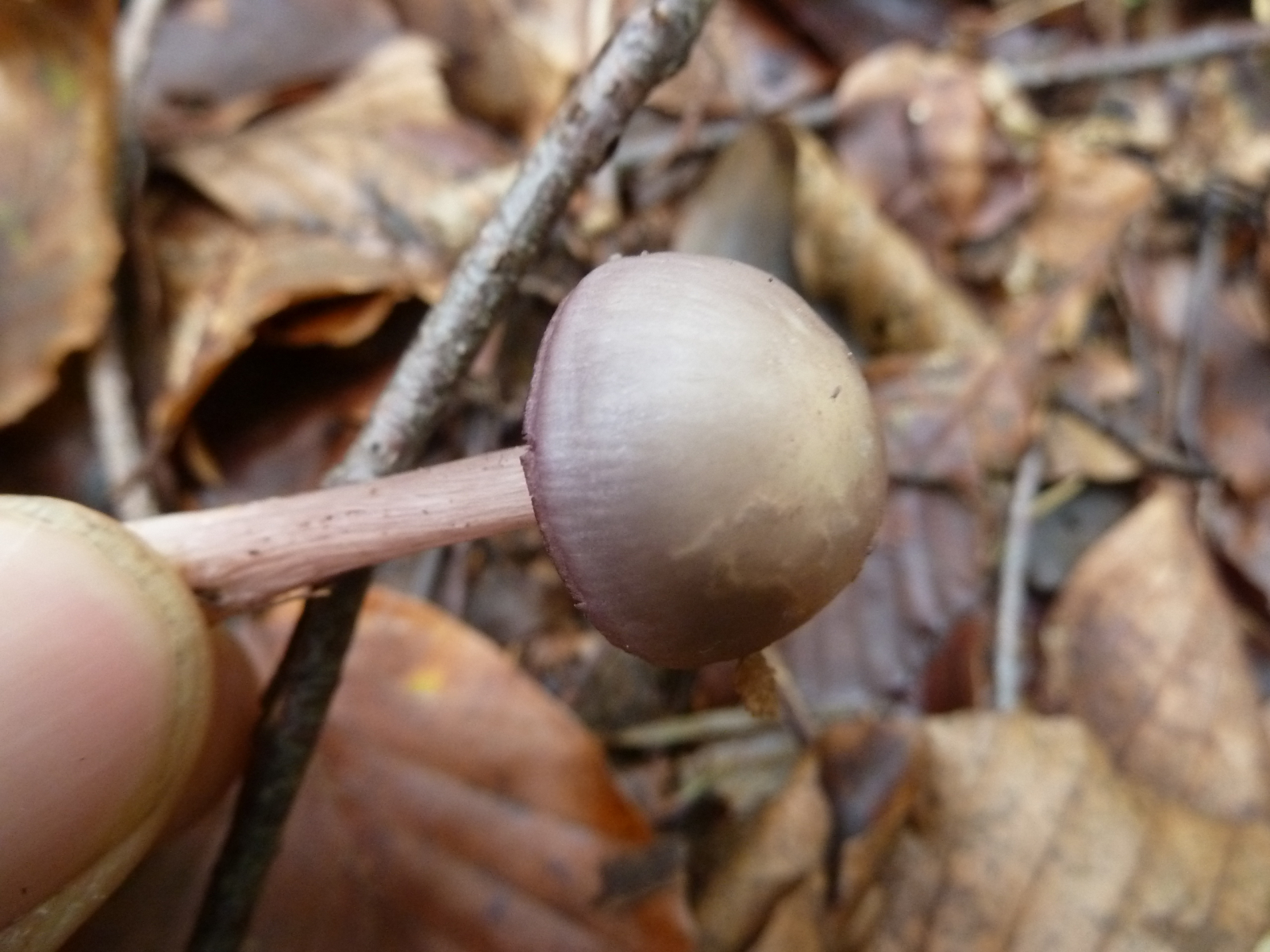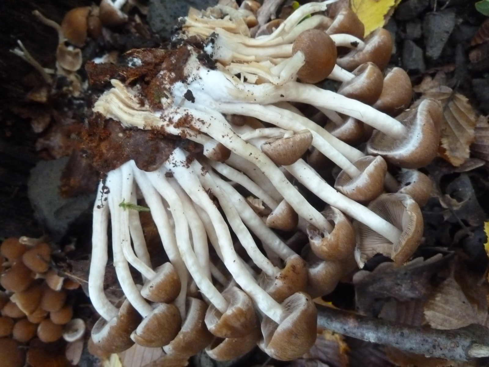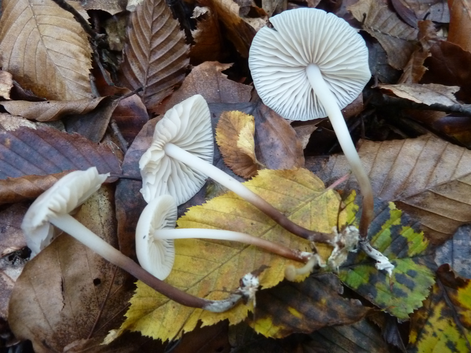 Fast vier Stunden bin ich heute im Eichen-Buchen-Mischwald auf basischem Basaltboden herumgelatscht und habe nur wenige Pilze finden können. Wenn man einmal vom saitenstieligen Knoblauchschwindling absieht, der in ordentlichen Stückzahlen wuchs, waren die wenigen anderen Arten auch jeweils nur in geringer Stückzahl zu finden.