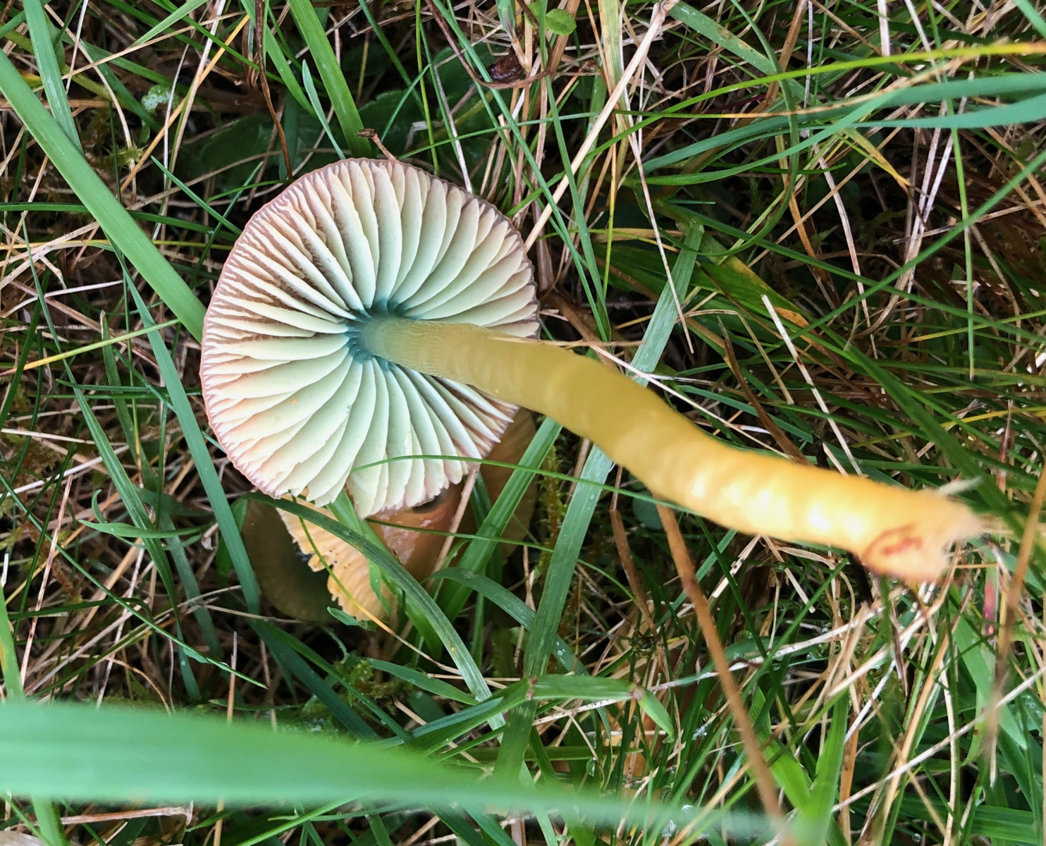 24 Mein absoluter Lieblingssaftling. Endlich habe ich ihn einmal in seiner grünen Jugendform gefunden - der Papageiensaftling - Hygrocybe psittacina