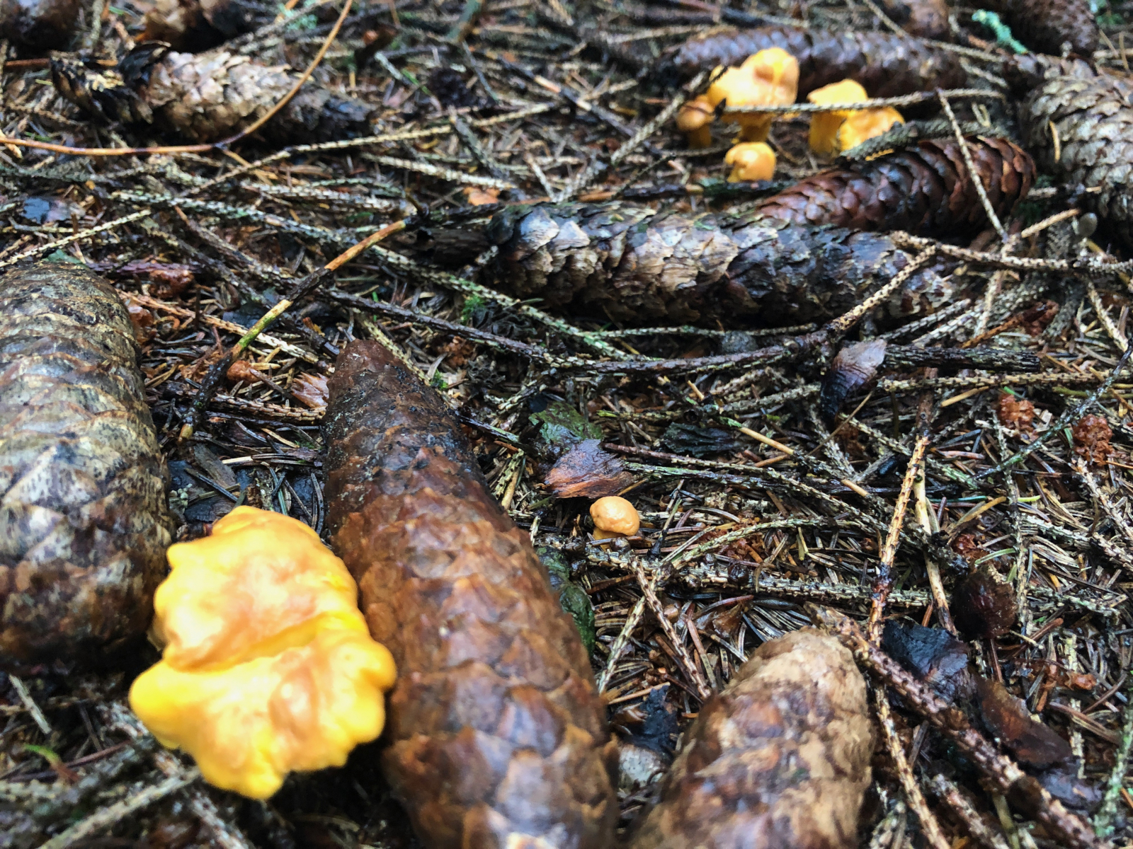 4 Pfifferlinge hätte man sich gut und gerne noch eine Mahlzeit ernten können.
