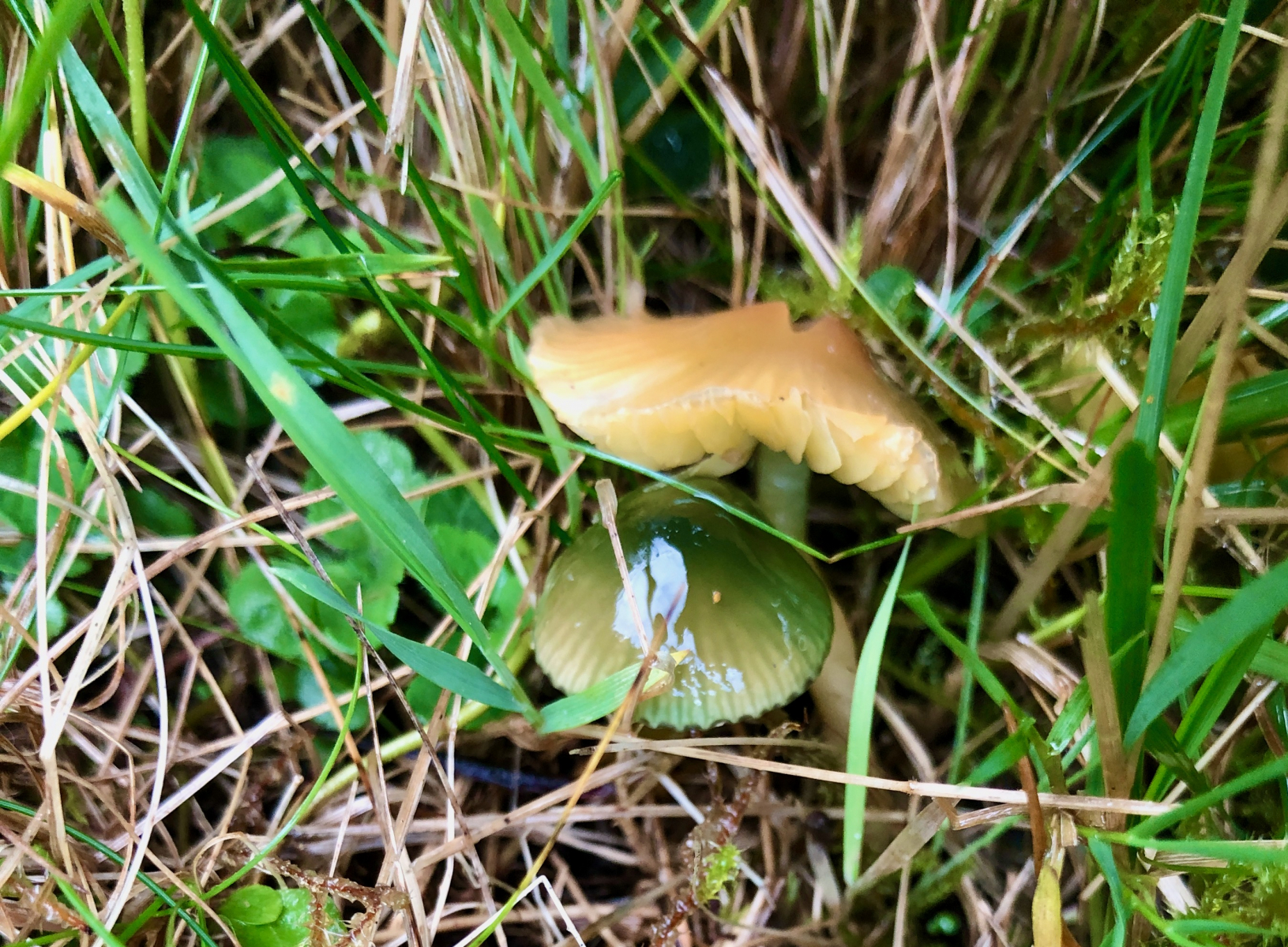 24 Mein absoluter Lieblingssaftling. Endlich habe ich ihn einmal in seiner grünen Jugendform gefunden - der Papageiensaftling - Hygrocybe psittacina