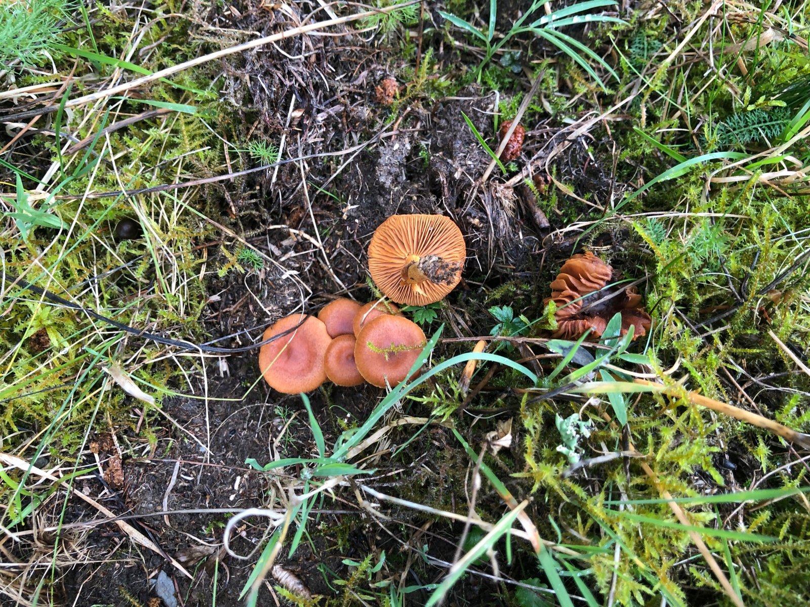 6 Nebelkappen wuchsen in großen Hexenringen, ebenso wie verschiedene Schleierlingsarten. Zwar waren viele bereits überständig, aber die nächsten Arten stehen schon am Start.