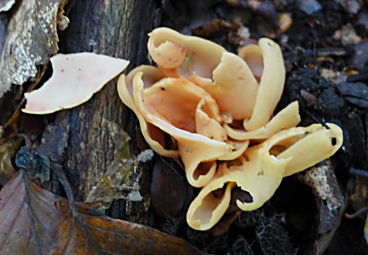 Ziemlich zu Anfang, als es noch nicht so stark regnete, erfreuten mich diese hier mit rötlichen Tönen in der Innenseite, die ich für Eselsohren halte: