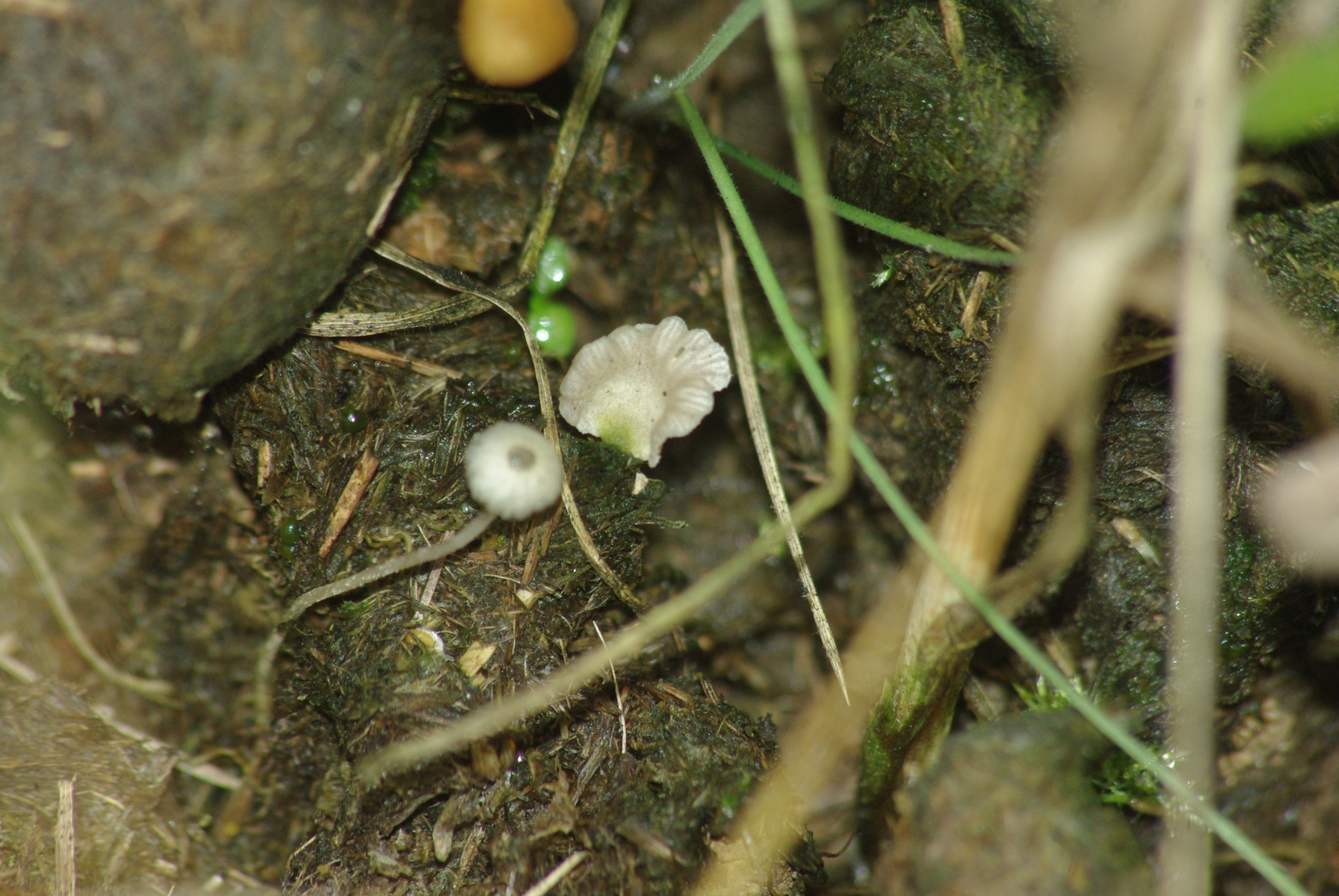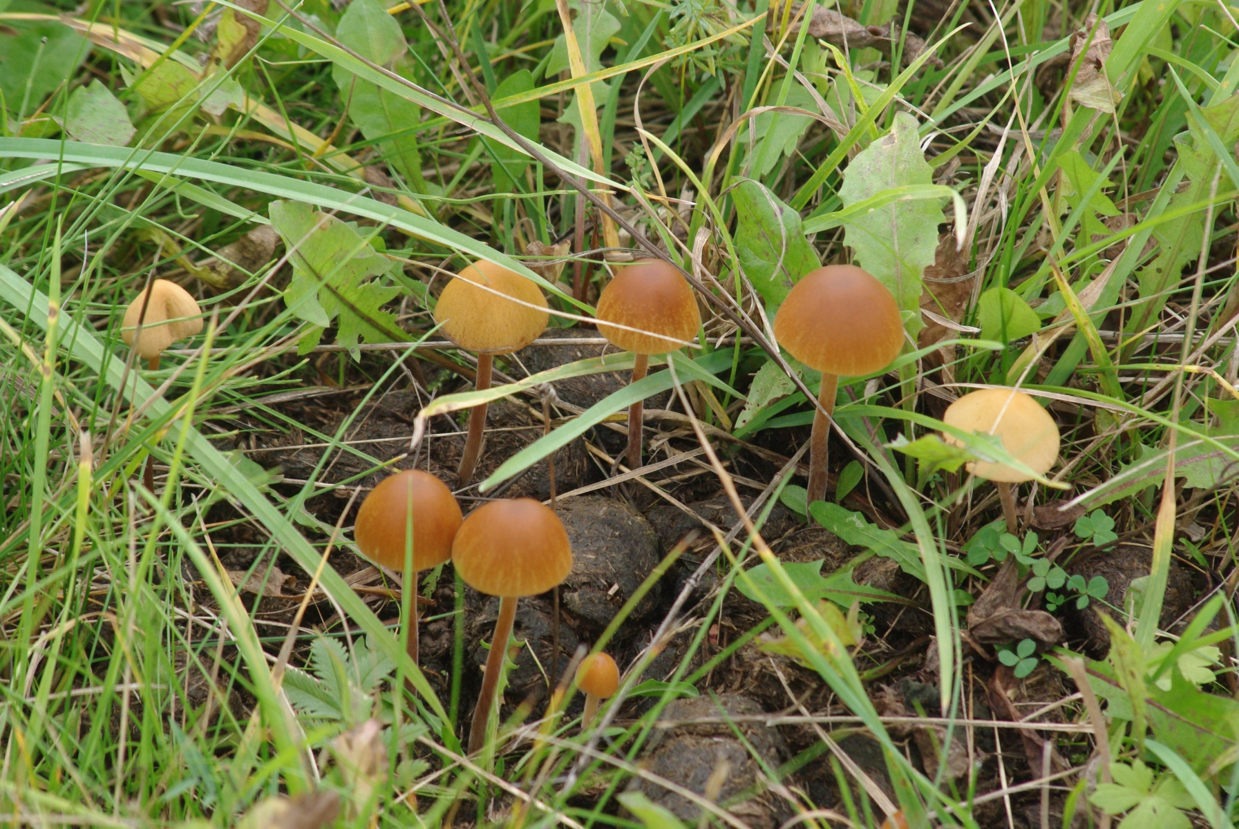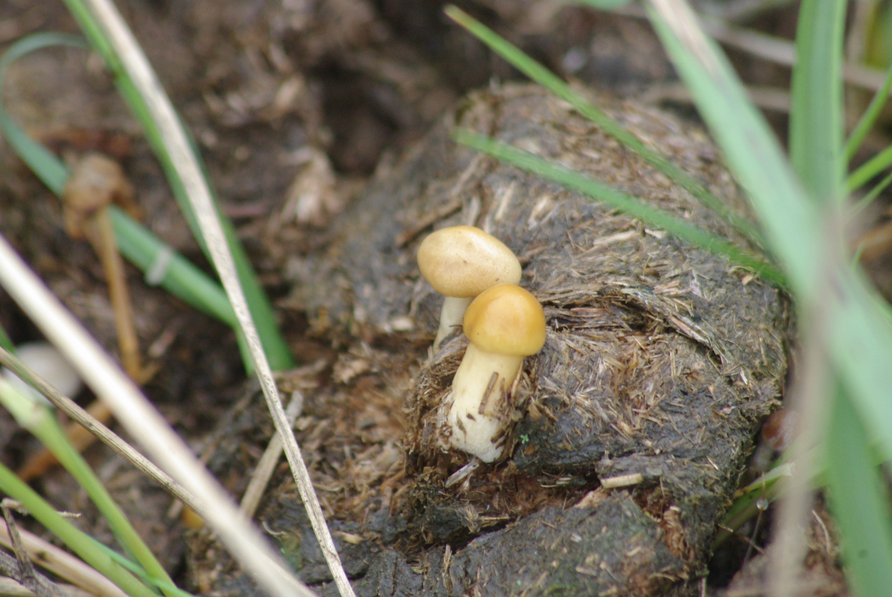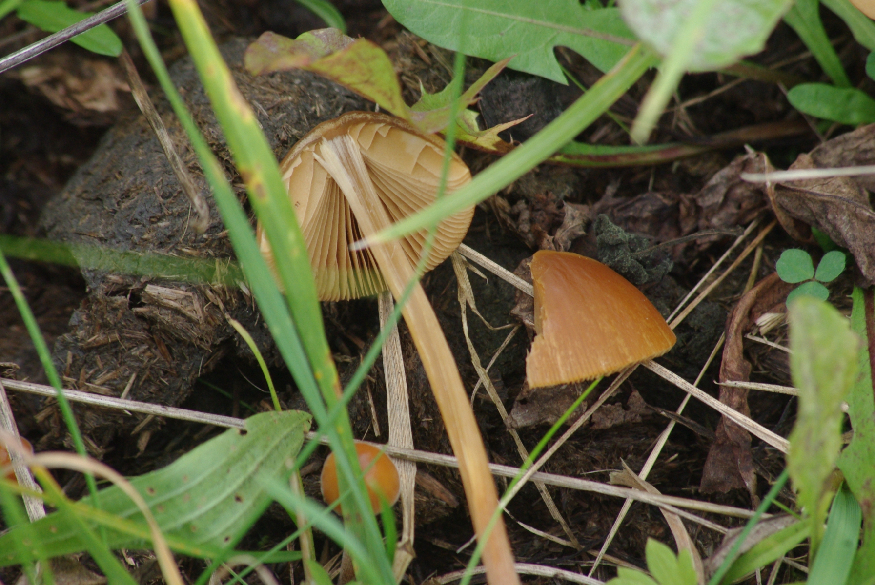 oranger Pilz auf Pferdemist, Conocybe sp.?
