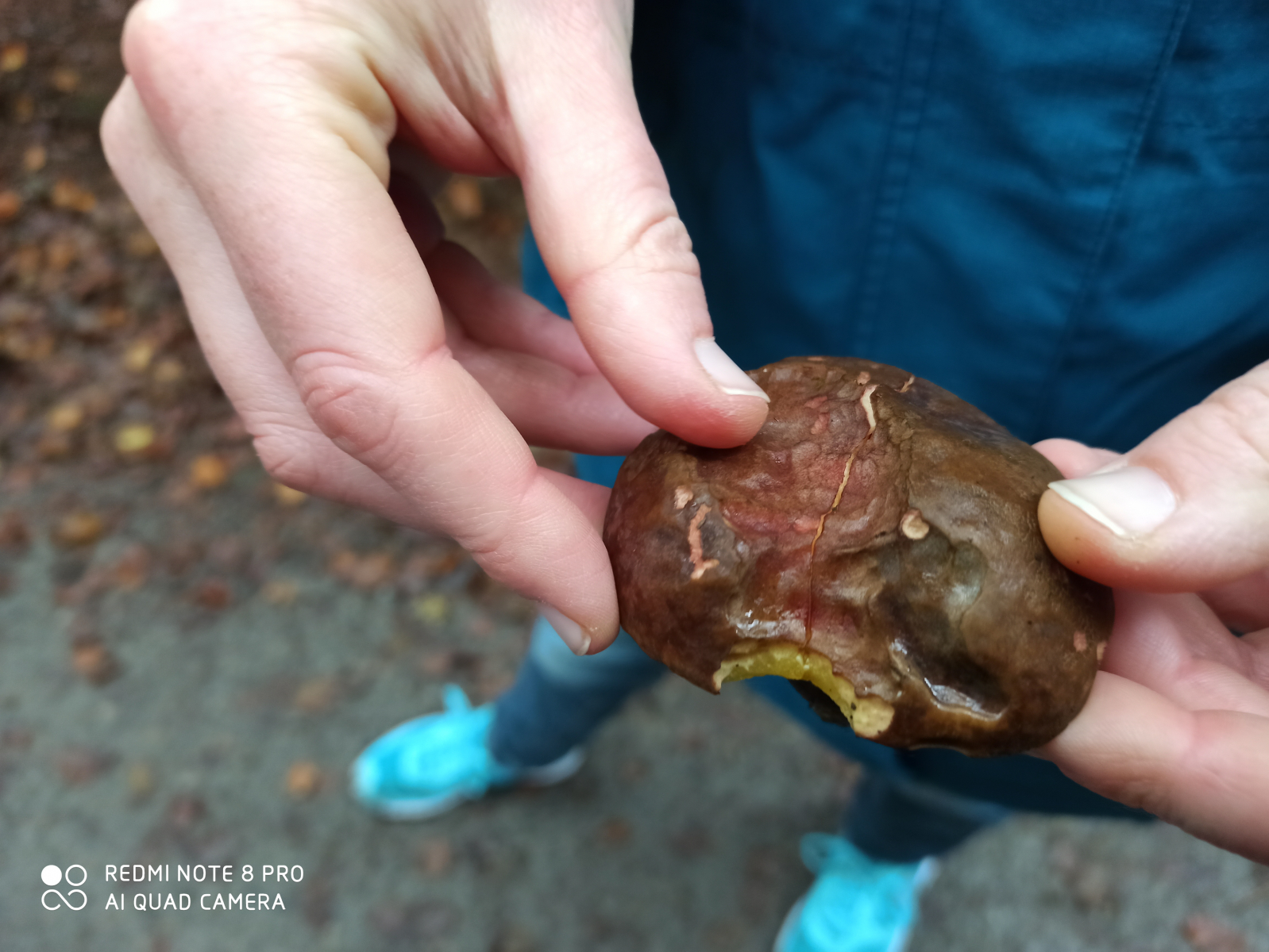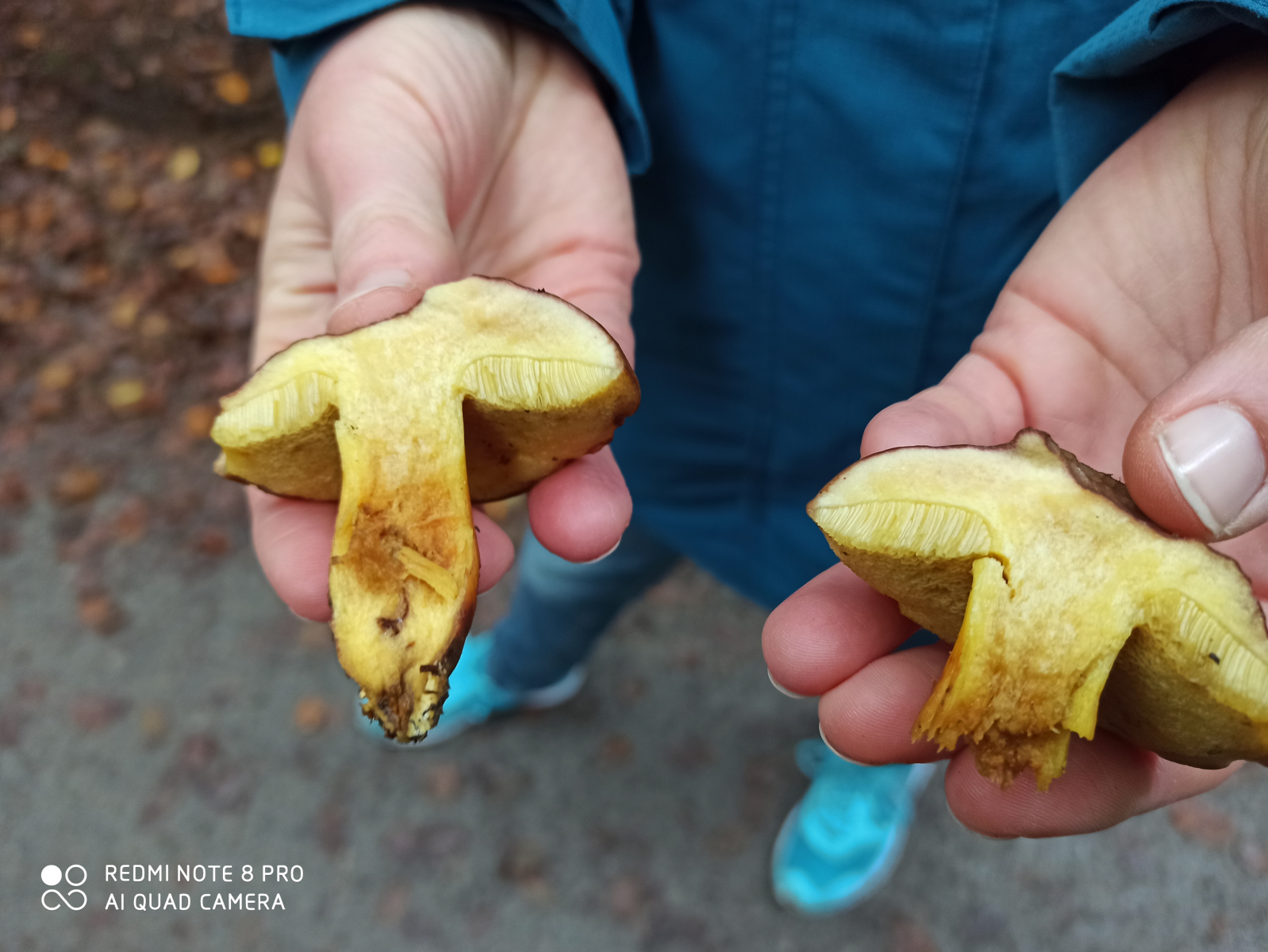 Nein, Xerocomus ferrugineus (Brauner Filzröhrling) ist hier ausgeschlossen, denn der hat nie so durchgehend gelbes Fleisch. Grundsätzlich hat der absolut gar kein gelbes Fleisch.