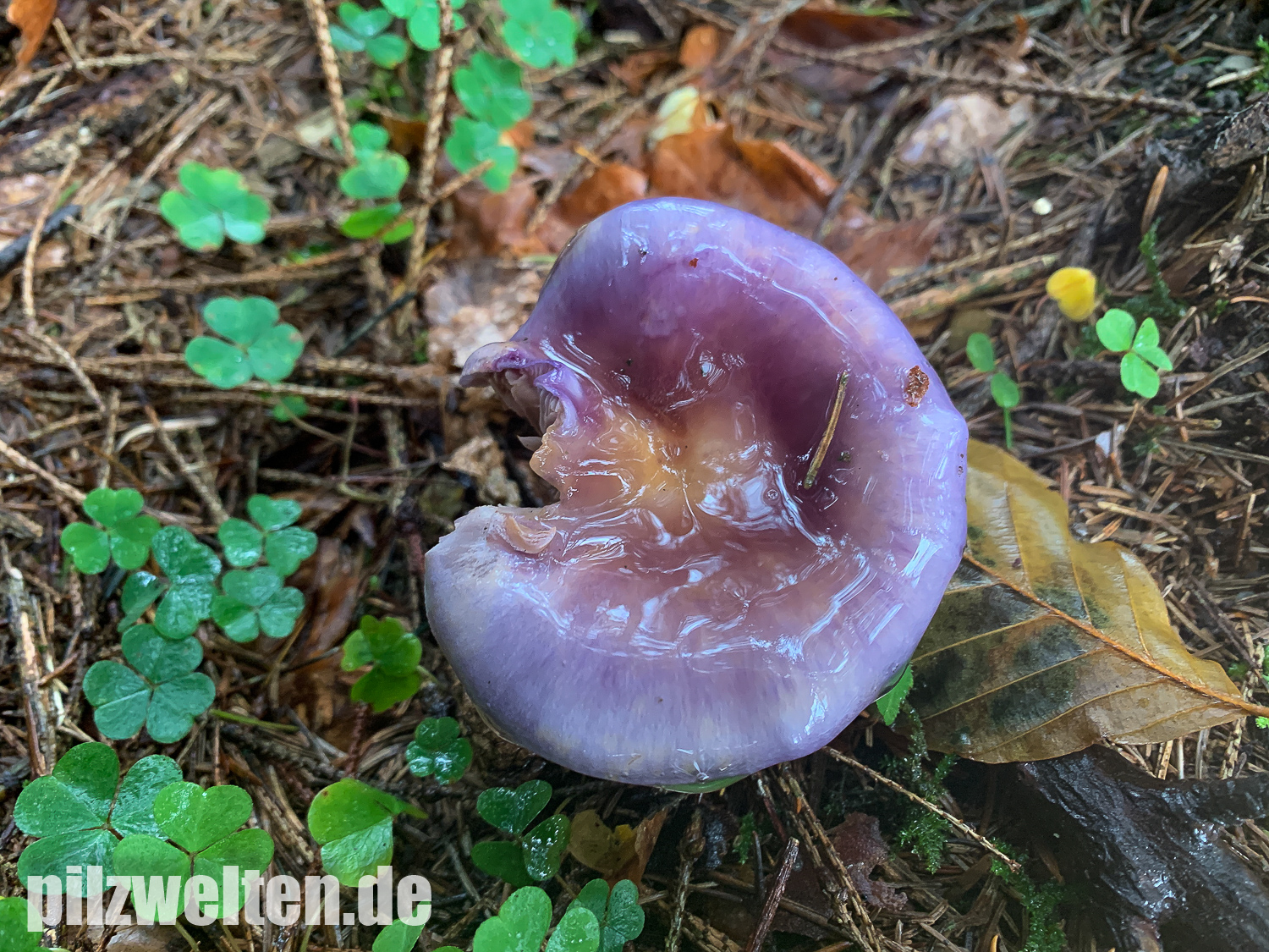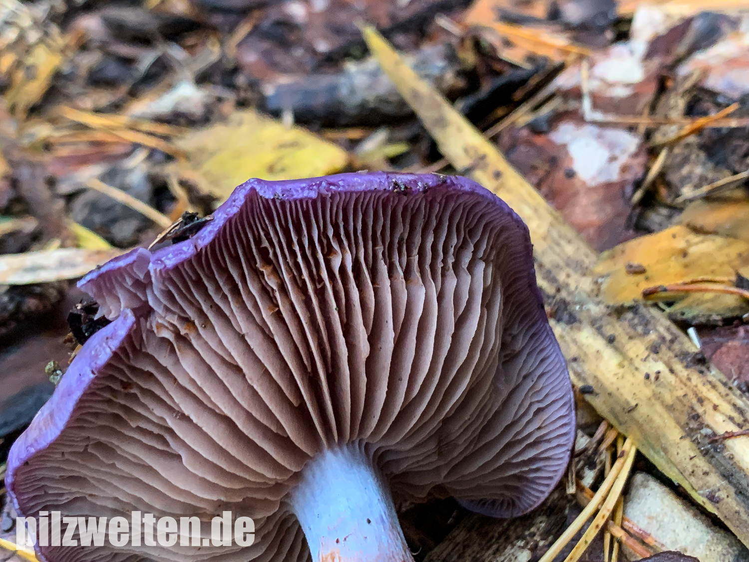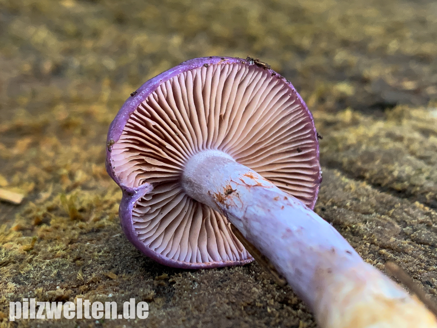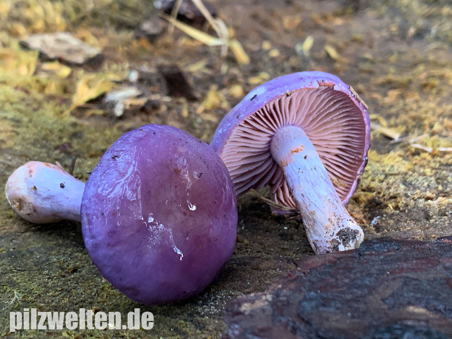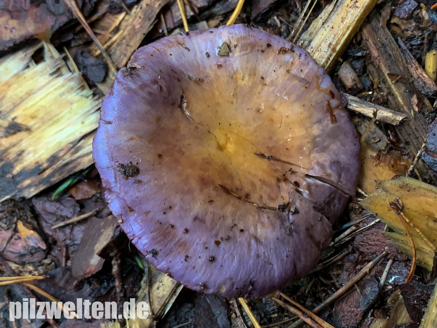 Hutoberseite: Als hätte man sie mit violettem Metallic-Lack angesprüht. Alte Fruchtkörper weniger Farbenprächtig & von der Hutmitte hellgelbbräunlich ausbleichend.