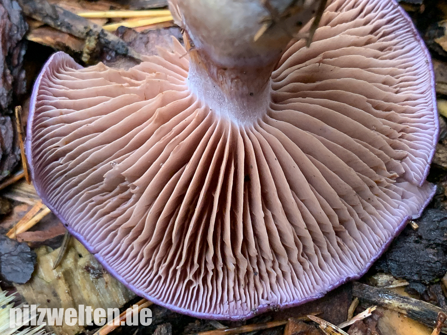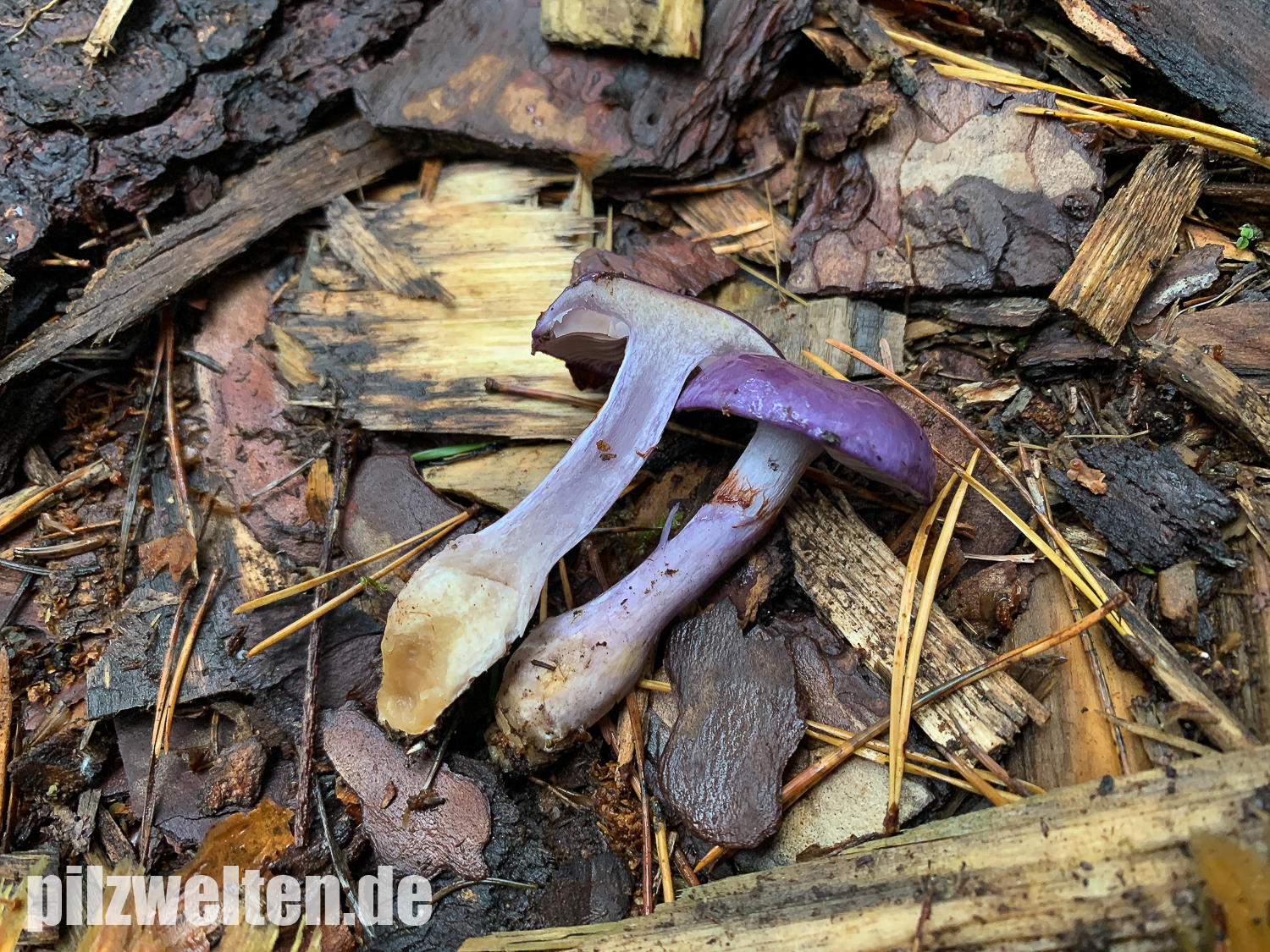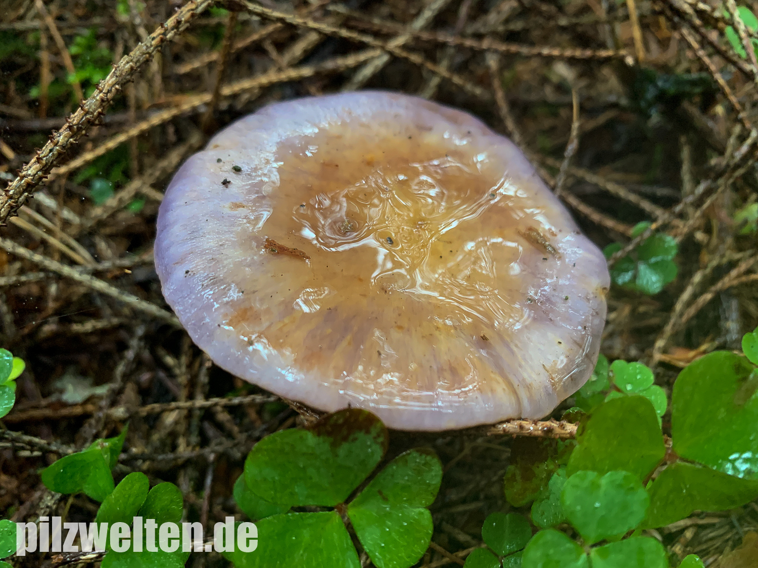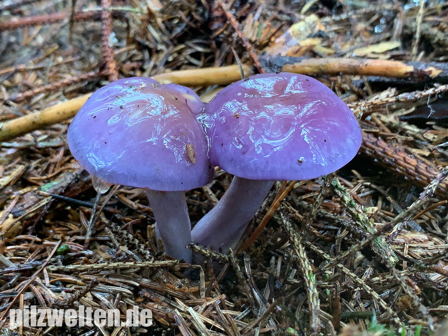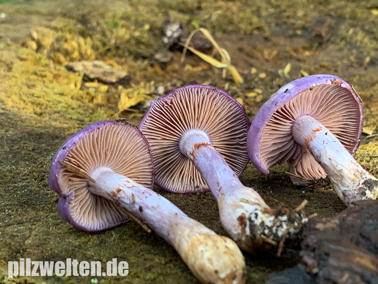 Hutoberseite: Als hätte man sie mit violettem Metallic-Lack angesprüht. Alte Fruchtkörper weniger Farbenprächtig & von der Hutmitte hellgelbbräunlich ausbleichend.