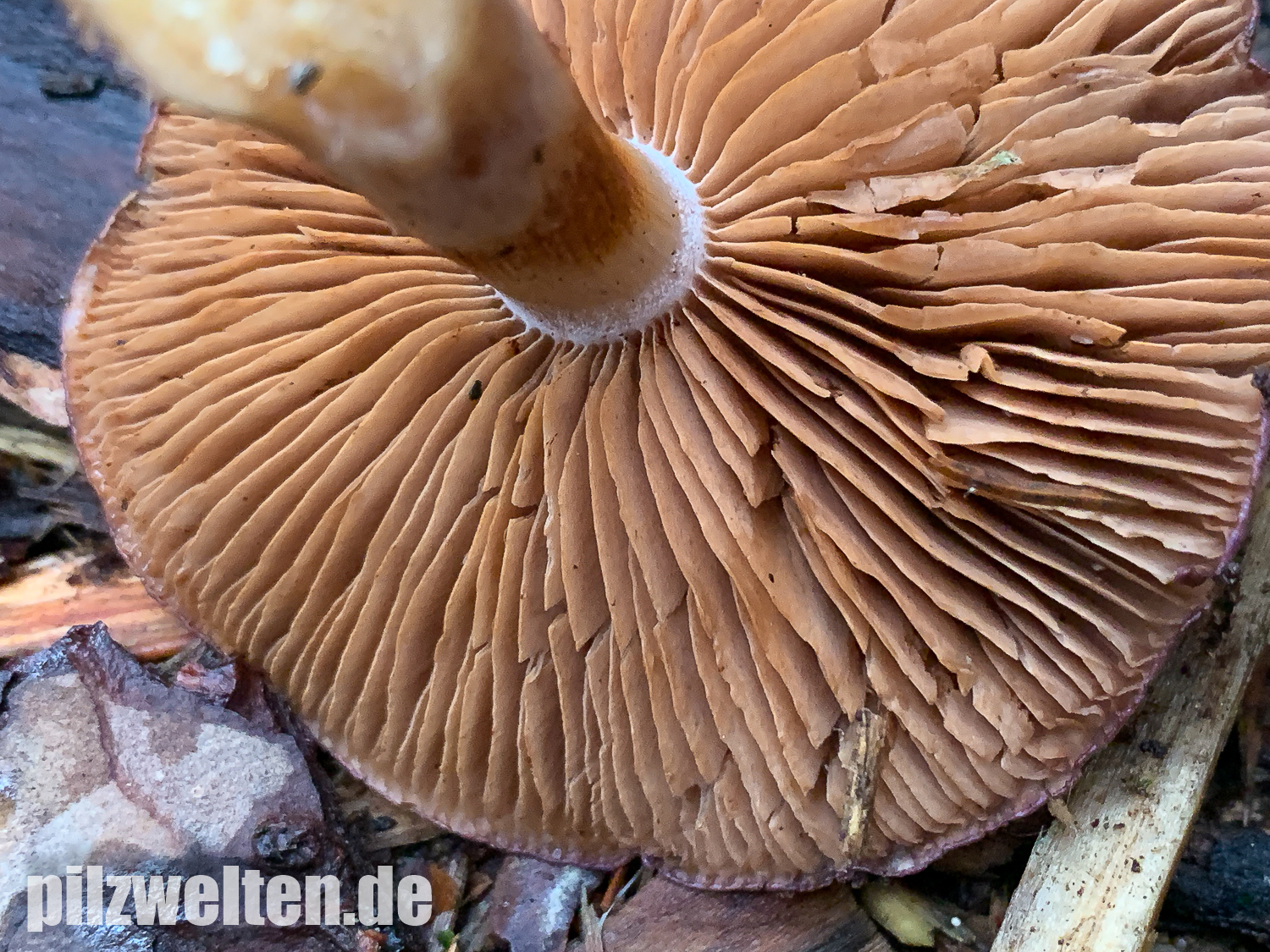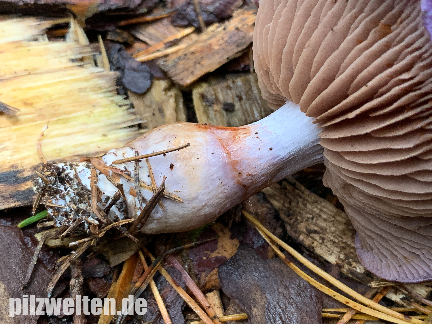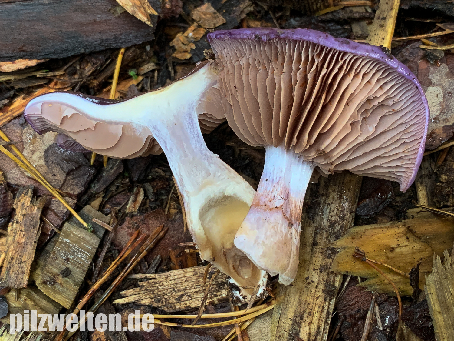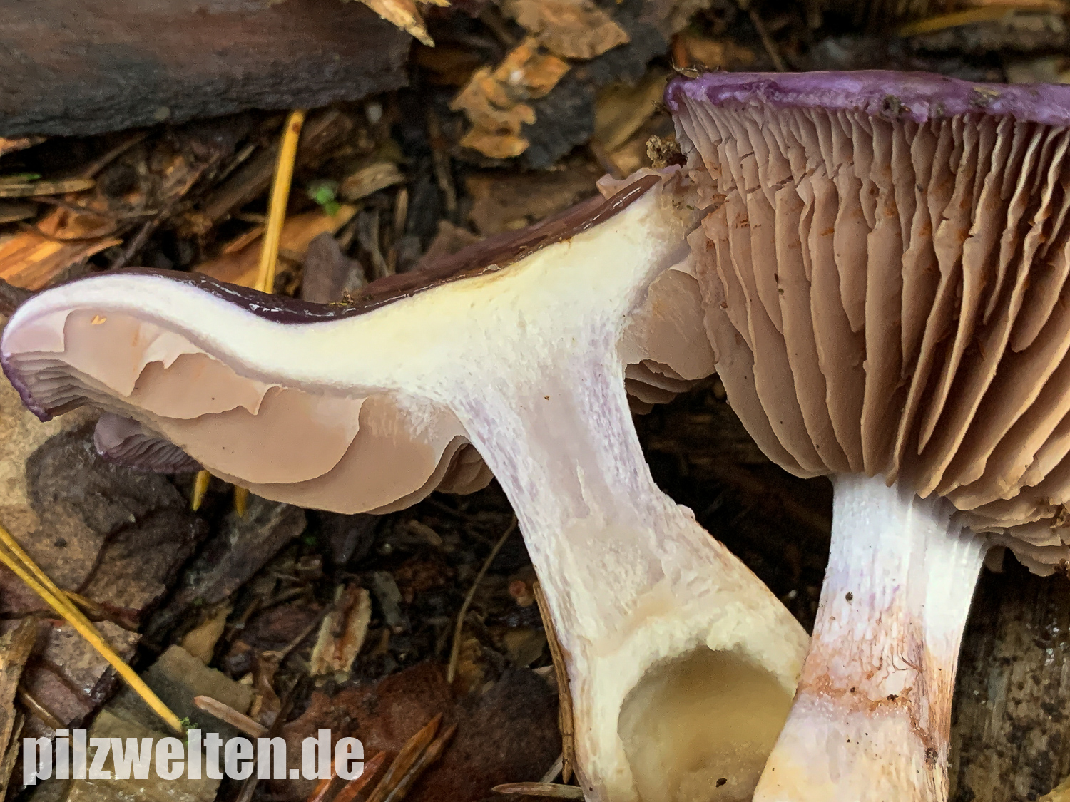 Einer dieser Schleierlinge ist der folgende Fund, bei dem wir ziemlich schnell bei Cortinarius salor gelandet sind. Da das ein Erstfund für uns wäre, würden wir um eure Meinung zum Fund bitten: