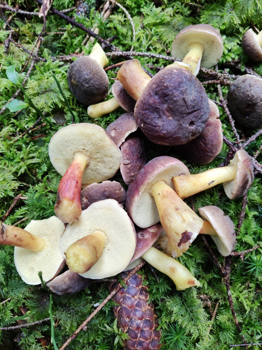 Mein Freund ist sich ziemlich sicher, dass es Rotfußröhrlinge sind. Wir haben sie in moosigem Untergrund gefunden.
