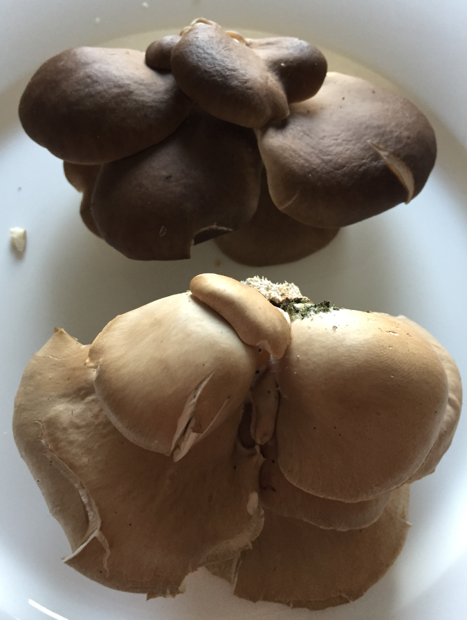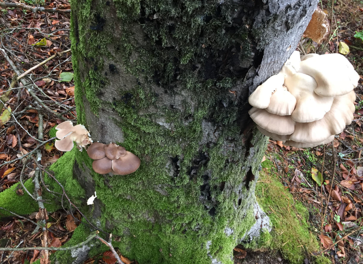 gestern habe ich an einen Baum rundherum übersäht diese helleren und dunkleren Seitlingen gesehen und denke, dass die hellen und dunkleren beides Austernseitlinge sind.