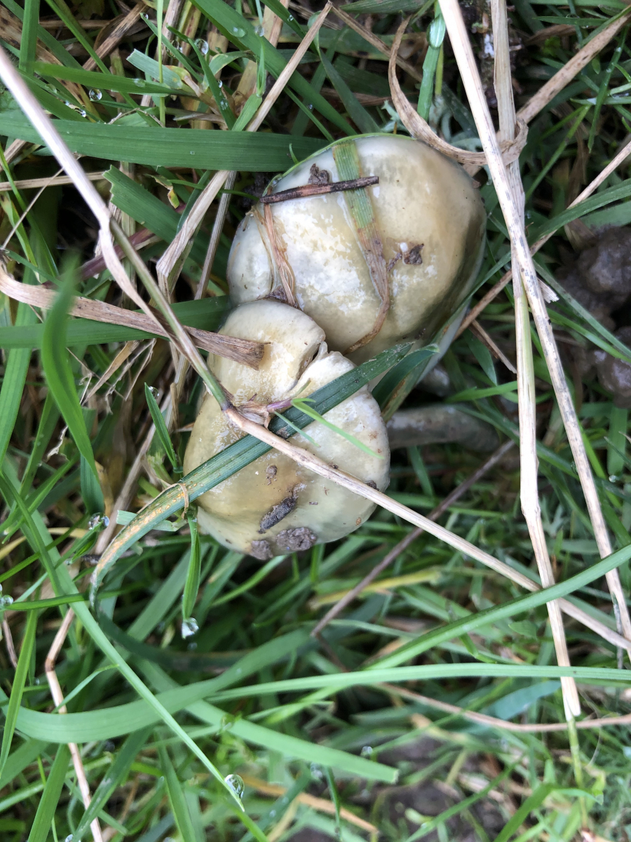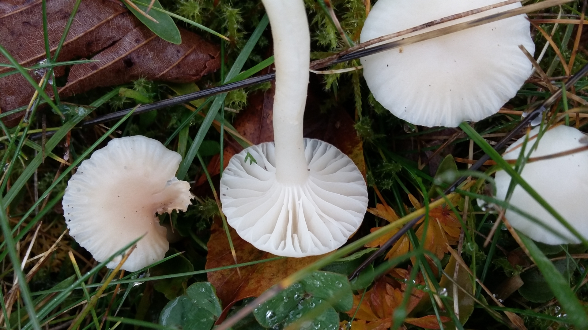 7) Von diesen hier hätte ich einen ganzen Korb füllen können. Weit auseinanderstehende wachsartige Lamellen. Relativ grosse und sehr feste Fruchtkörper.