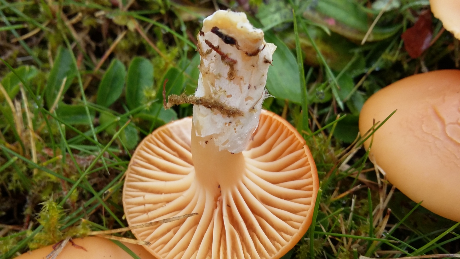 7) Von diesen hier hätte ich einen ganzen Korb füllen können. Weit auseinanderstehende wachsartige Lamellen. Relativ grosse und sehr feste Fruchtkörper.