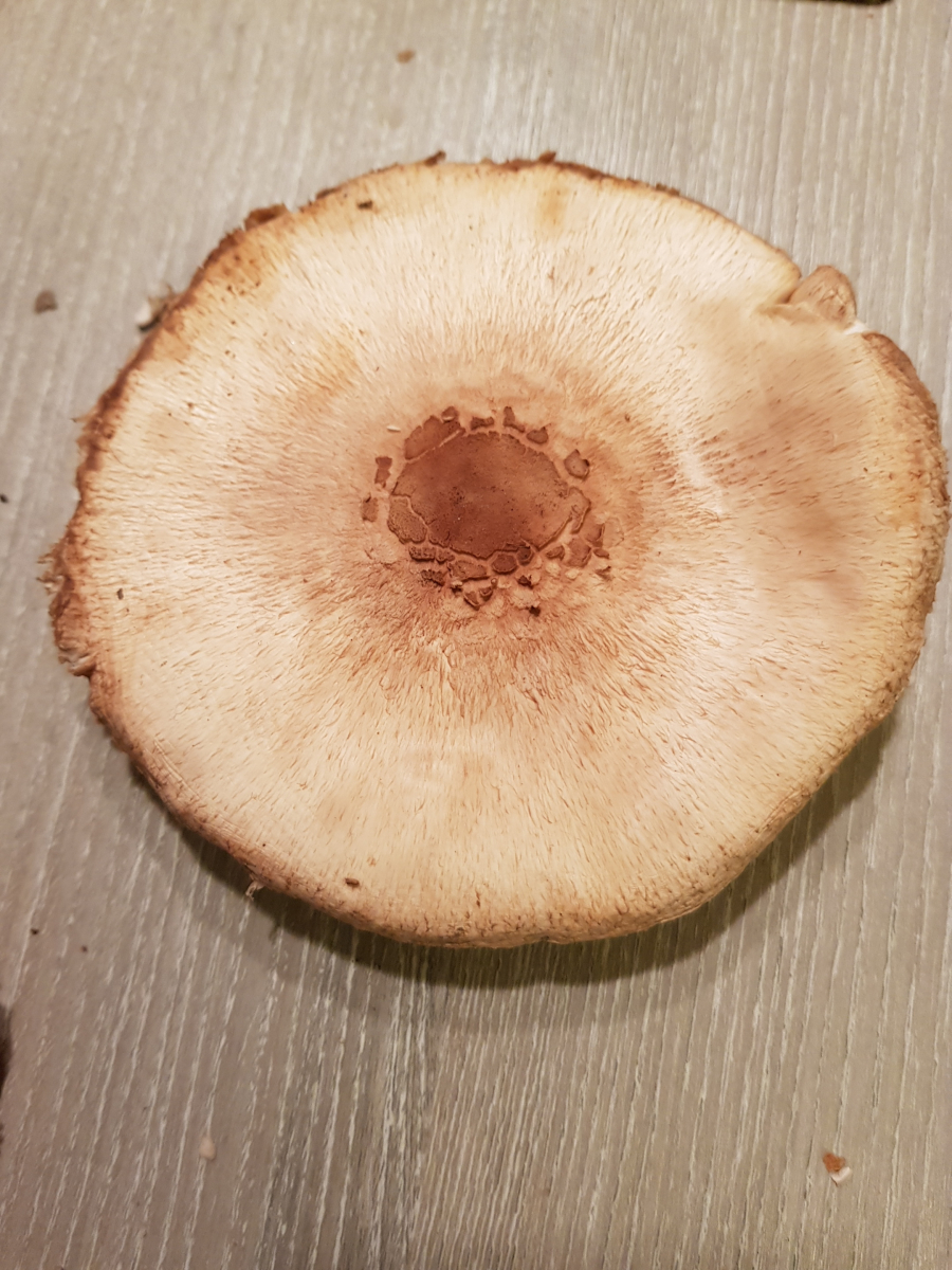 Schirm: Durchmesser ca. 10cm, Schuppen nur in der Mitte, keine Verfärbung des Fleisches
