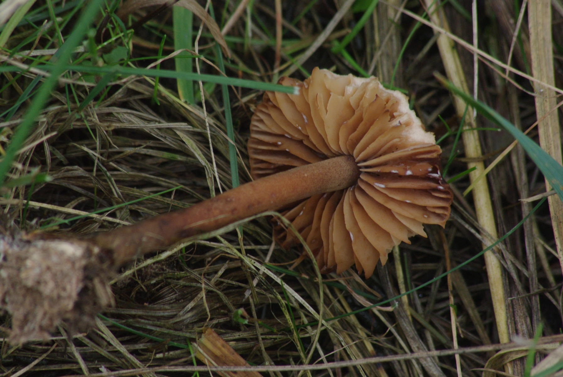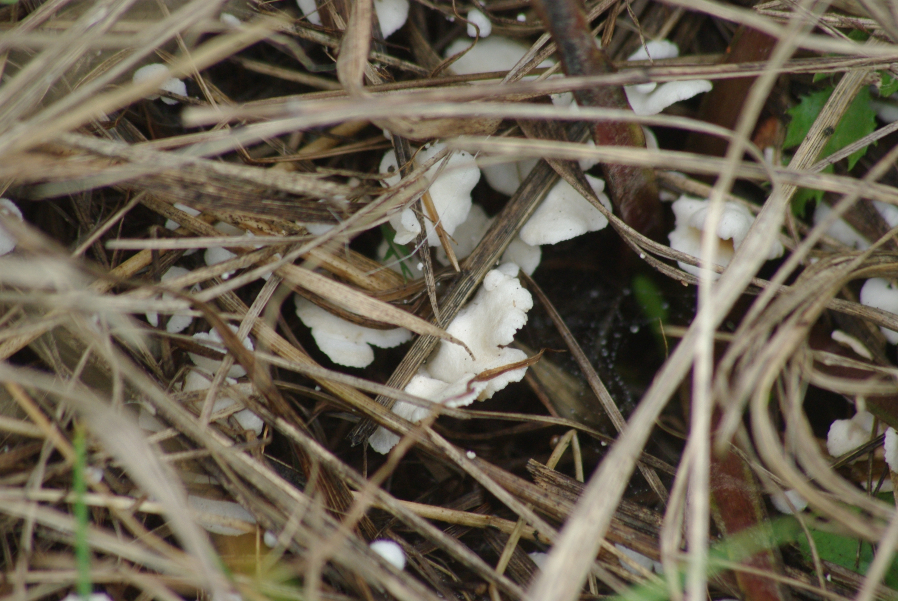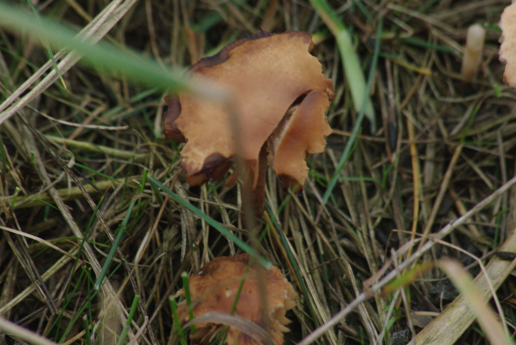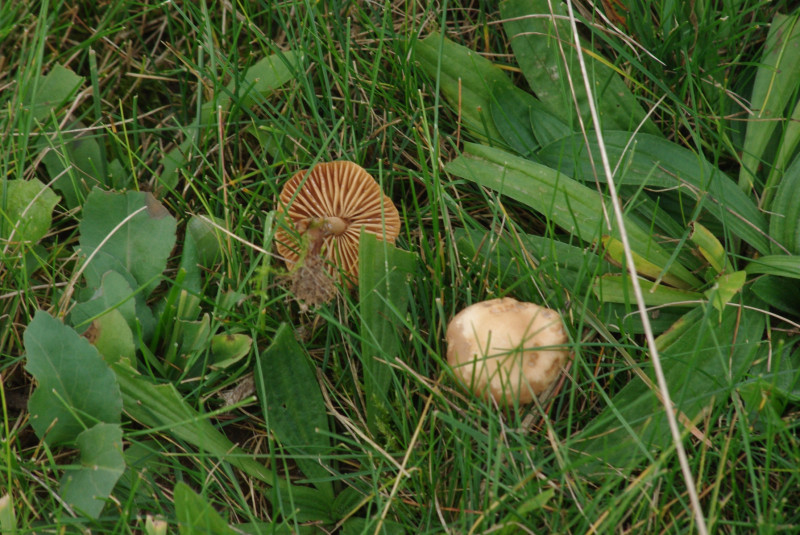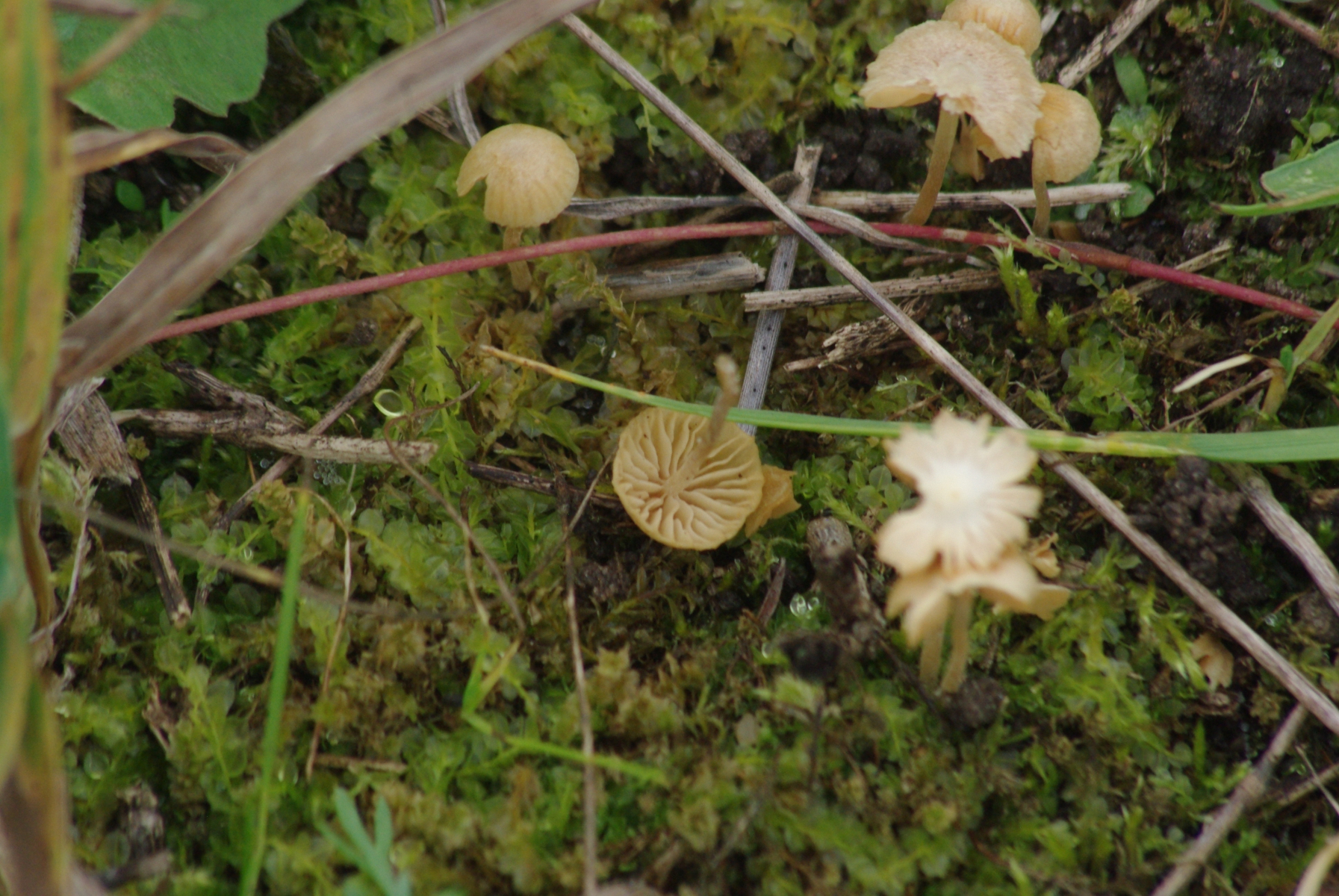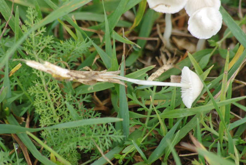 1) Ein Helmling (?) in reinweiß, mäßig magere Wiese (Sand, Kies, leicht kalkhaltig), der rausgezogene Pilz erkennbar auf organischem Substrat (Graswurzel?). Spezifischer, erträglicher Geschmack, kann ich aber nicht beschreiben. Geruch indifferent.