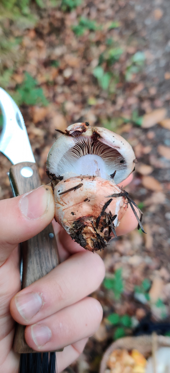 Ich habe einen bereits von einem anderen Pilzsammler entnommenen Pilz gefunden, der für mich wie irgendein Schleierling aussieht aber welcher genau das ist weiß ich nicht. Bestimmungsmerkmale sollten denke ich gut erkennbar sein.