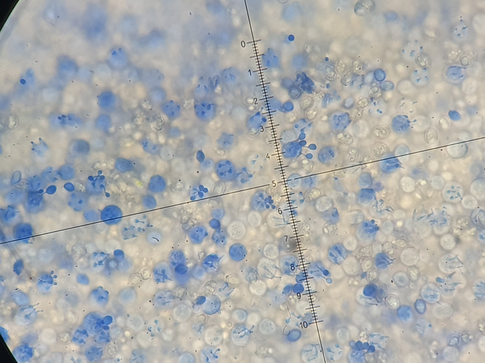 Basidien 4 sporig. Draufsicht bei Tausendfach: