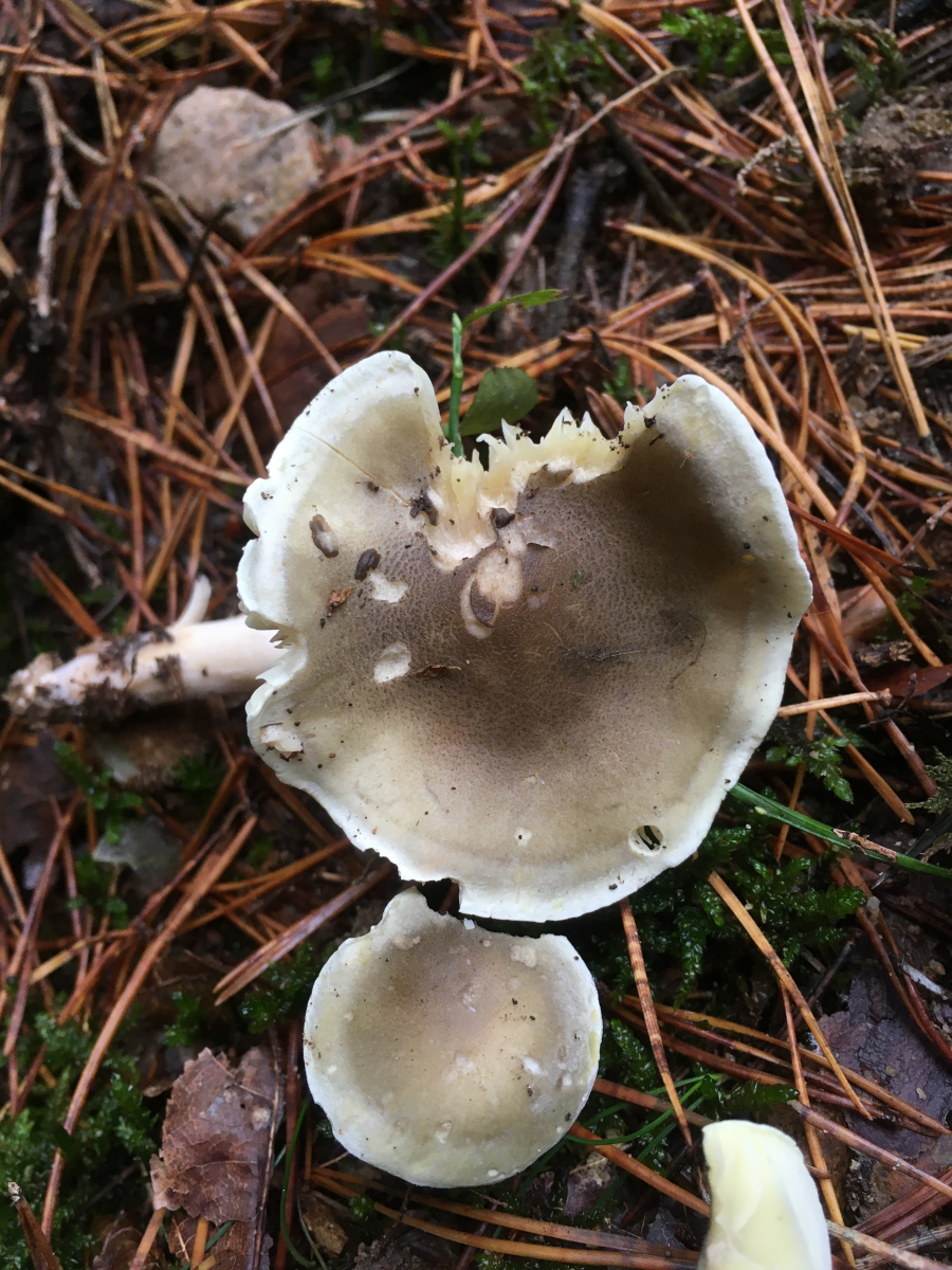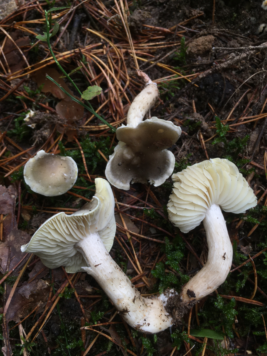 1) halte ich für einen Seifenritterling. Farbe leicht grüngrau, Lamellen mit leichtem grün-gelb Stich, sehr weit entfernt stehend. Geruch kann ich noch nicht zuordnen, jedenfalls ungewöhnlich, aber eigentlich nicht abstoßend. Seife könnte hinkommen, leicht üblen Waschküchengeruch empfand ich eher nicht.
