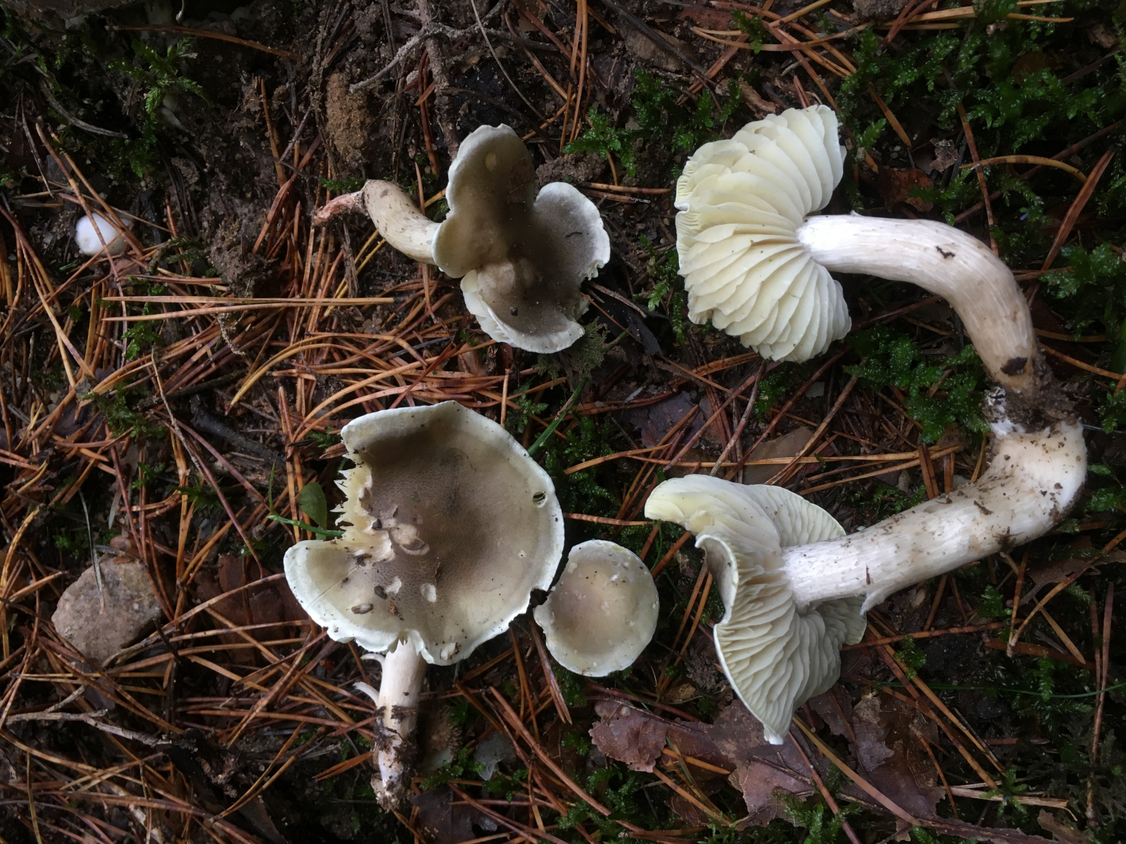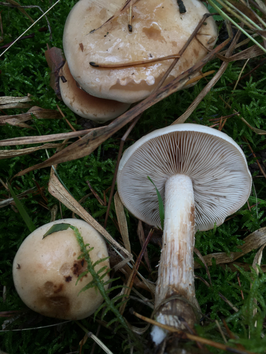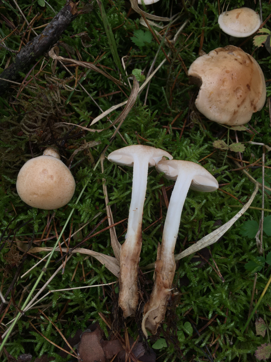 Hätten sie einen Geruch hätte ich auf Hebeloma (zb den tongrauen Fälbling) getippt. So hadere ich noch mit Tricholoma (aber dafür sind mir die Stiel eigentlich zu lang und dünn). Ich habe an mehrern Stellen gegraben, Holz schliesse ich aus, und der Hut war bei jung und alt wie auch letztes Jahr schon unbeschuppt (und damit hoffentlich auch Pholiota)