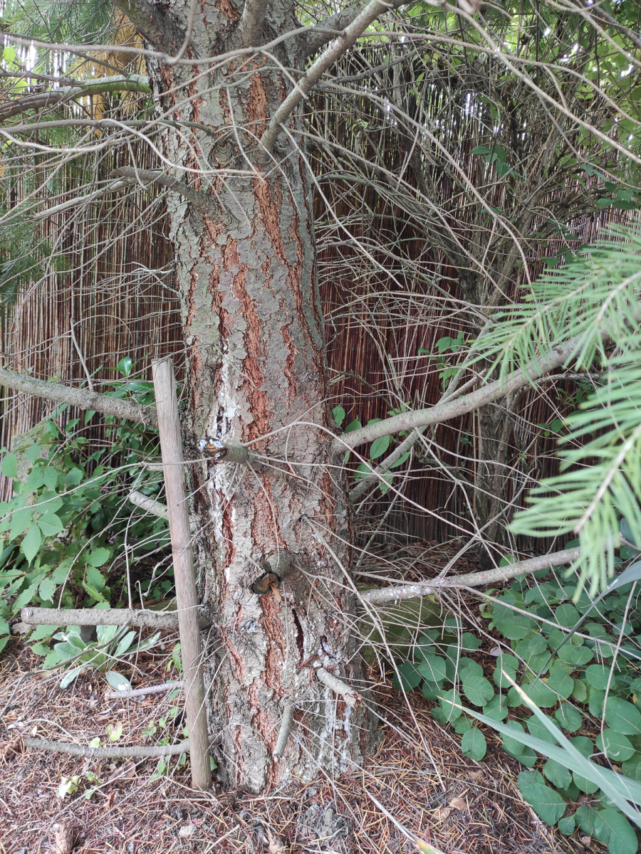 Der zweite potentielle Mykorrhiza-Baum im Garten steht 5 Meter daneben, getrennt durch einen Fußweg. Ich denke es ist eine Douglasie - Pseudotsuga spec. oder?