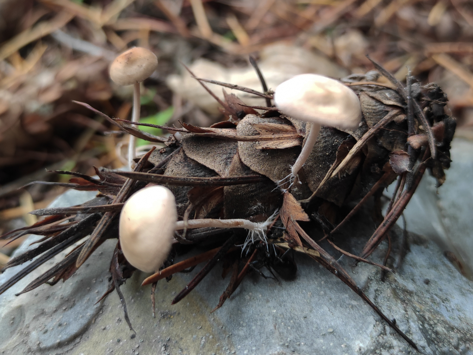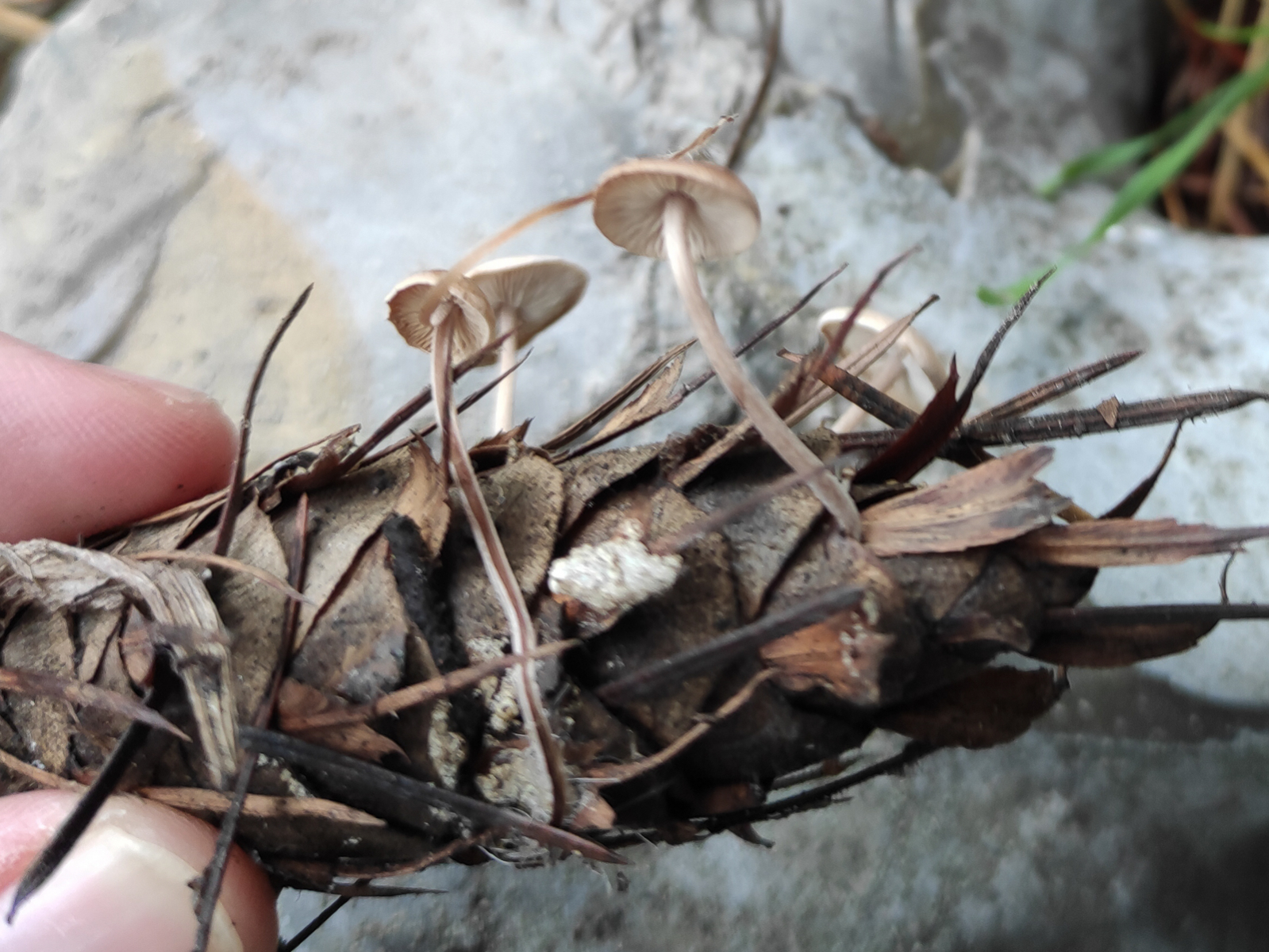 4. Und der letzte ist kein Mykorrhiza-Pilz aber er wächst auf dem Douglasien-Zapfen. Das ist ok für den von mir vermuteten Mäuseschwanzrübling? Bilder sind leider nicht ganz perfekt, hatte nur das Handy dabei.