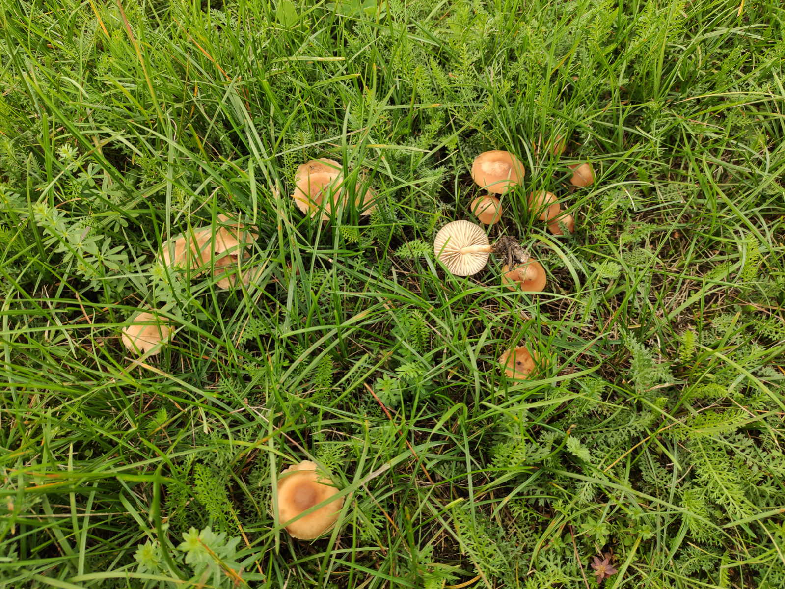 Neben den Mykorrhiza-Pilzen guckte ich mal eben kurz auf die Wiese 100 Meter entfernt vom Haus. Es stand alles voll. Ich hatte nicht viel Zeit, da die kleinen Neffen im Anmarsch waren, die mit Vorliebe auf Pilzen rumtrampeln. ![]()